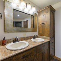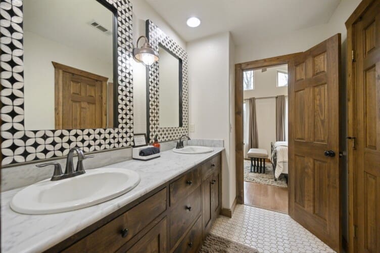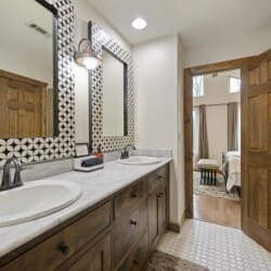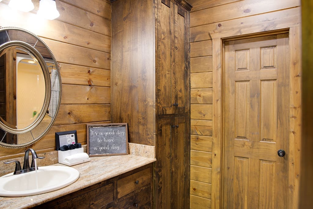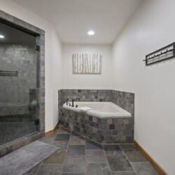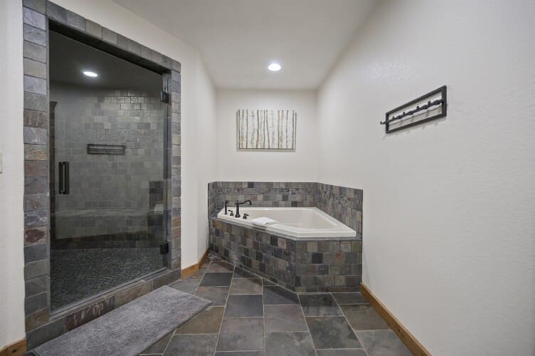 Refresh and rejuvenate in our immaculate bathrooms at Aiukli Creek View Cabin, where spa-like indulgence awaits. The primary bathroom boasts an extra-large shower and steam room with a built-in bench for ultimate relaxation. A second full bathroom, accessible from the second and third bedrooms, ensures convenience for all guests. Downstairs, another full bathroom adds to the cabin’s comfort and accessibility.