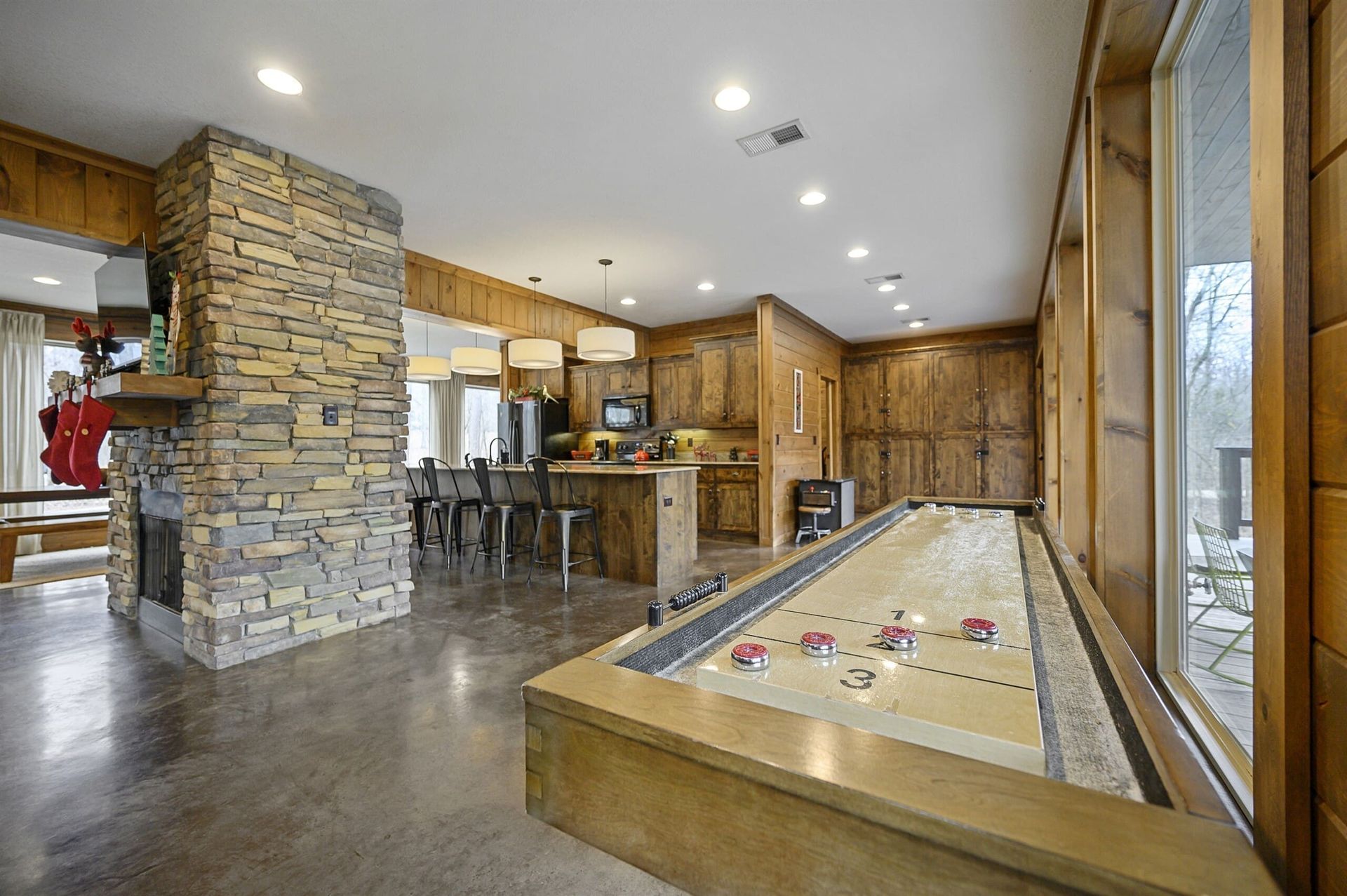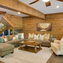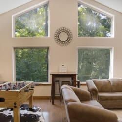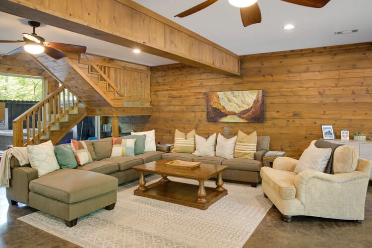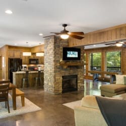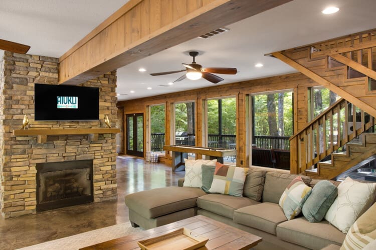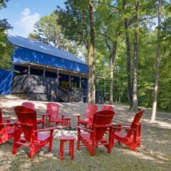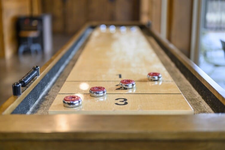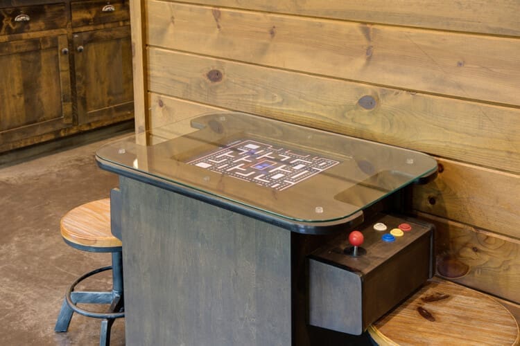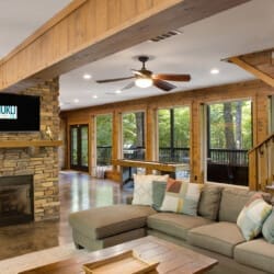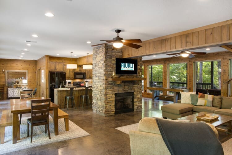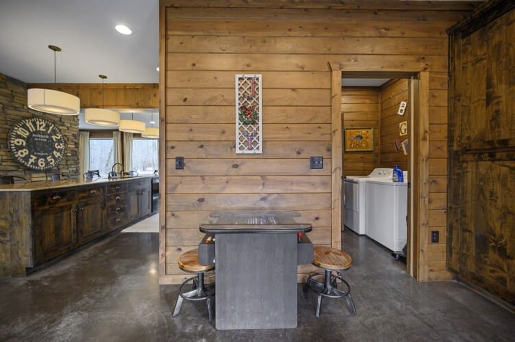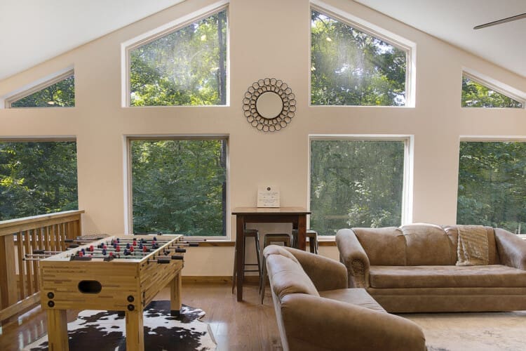 Step inside Aiukli Creek View Cabin to discover a world of comfort and entertainment. Our cabin boasts a BRAND Waffle Bar, a sumptuous steam room infused with complimentary natural oil aromatherapy, and a bubbling hot tub to soothe your senses. Test your skills at shuffleboard, engage in spirited matches on the foosball table, or reminisce over classic arcade games like Pac-Man. Outdoors, the fun continues with activities like Corn Hole, horseshoes, and life-sized tic tac toe. Let the little ones frolic in the kiddie corner while you relax on swing seats by the picnic table.