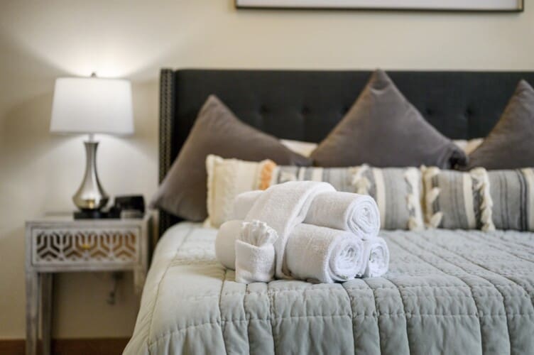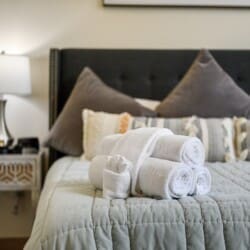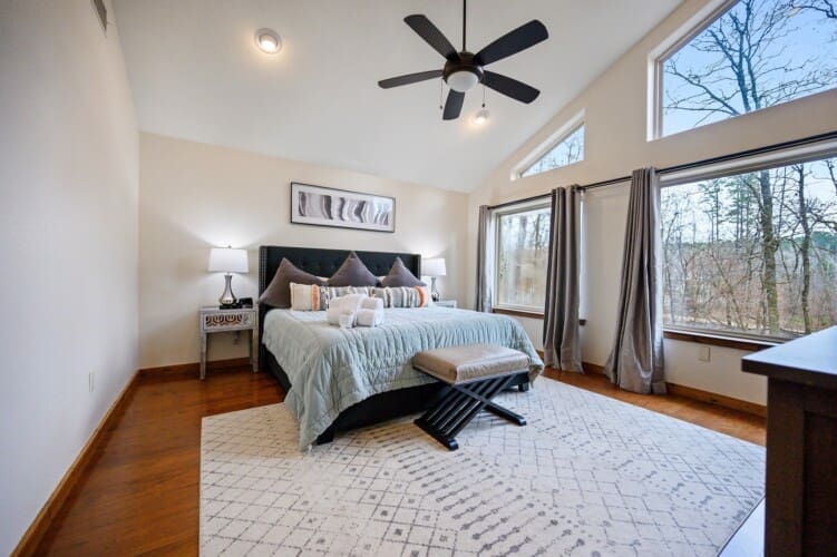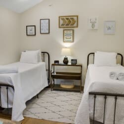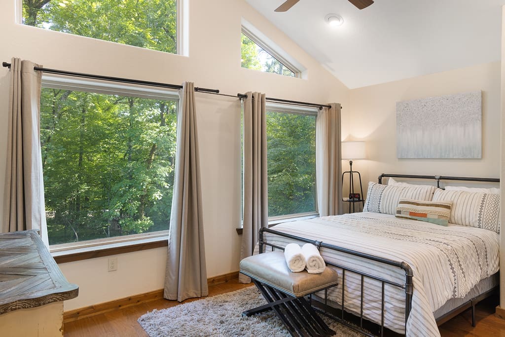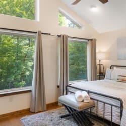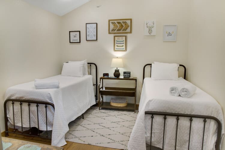 Sleep comes easy in our thoughtfully appointed bedrooms at Aiukli Creek View Cabin, where plush bedding ensures a restful night’s slumber. The ensuite bedroom features a king bed, while bedroom 2 offers a cozy queen-size retreat. Bedroom 3 has two twin beds, perfect for children or solo travelers. Additional sleeping space is available in the living room’s sleeper sofa and the upstairs common area’s bunk beds.