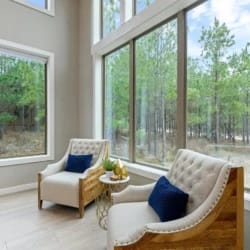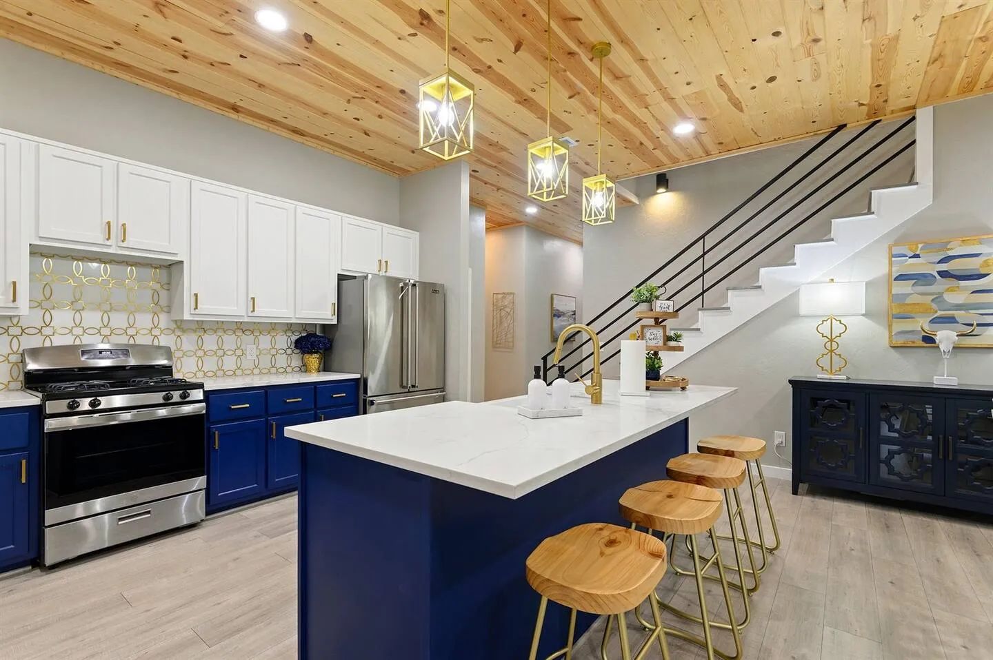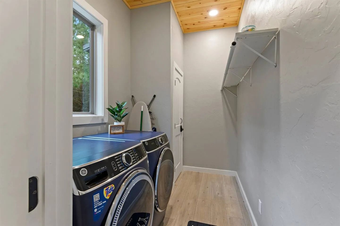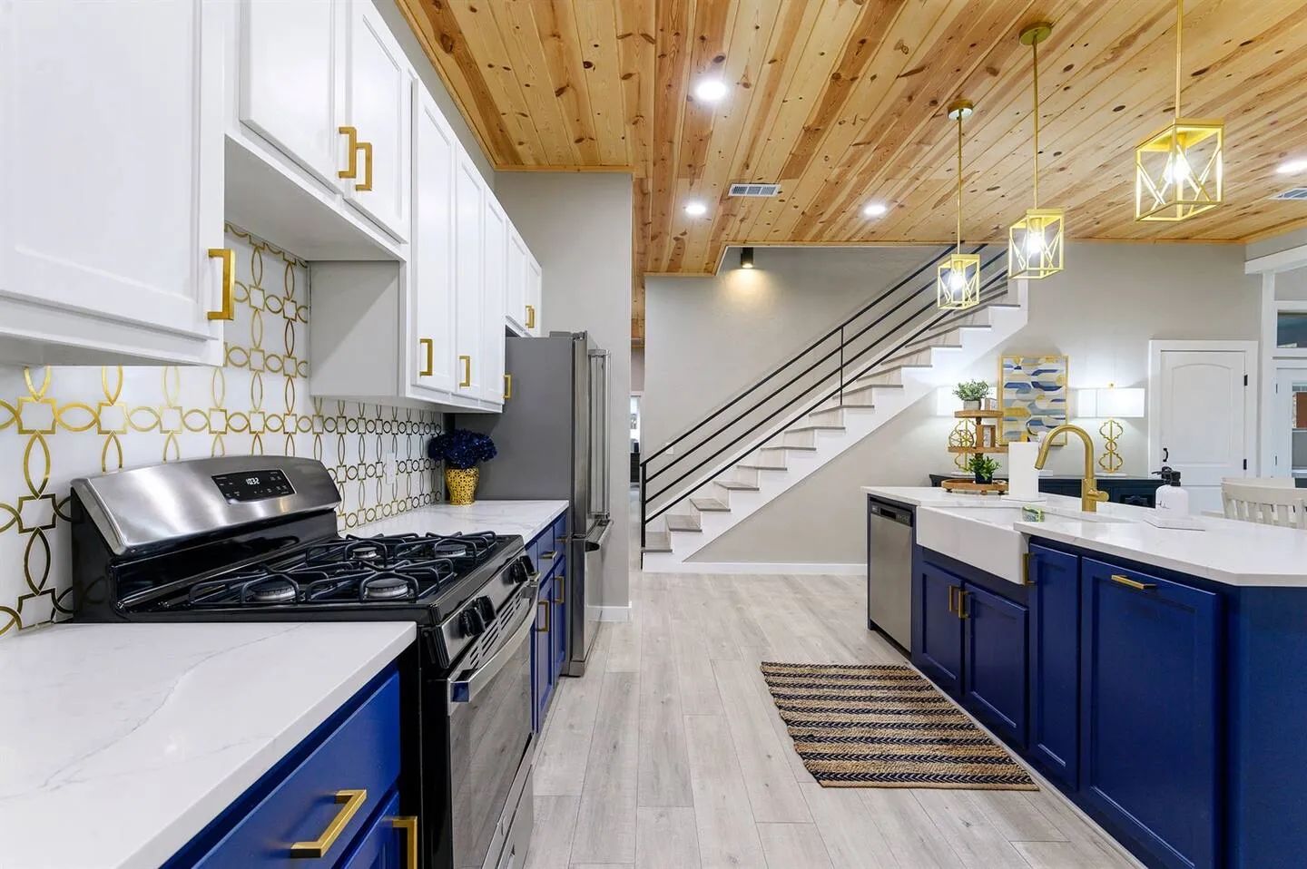 For those who love to cook and entertain, the kitchen inside All Your Promises offers everything needed to prepare memorable meals. Stainless steel appliances gleam against quartz countertops, and the open layout ensures everyone stays connected, even while preparing dinner. A large dining table comfortably seats eight, with additional bar seating for four, making it easy for large groups to enjoy mealtime together. Morning coffee becomes a ritual here, with both drip and pod options available, while the laughter of loved ones fills the air as pancakes flip and the forest quietly stirs outside the windows.