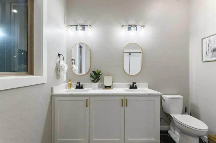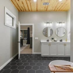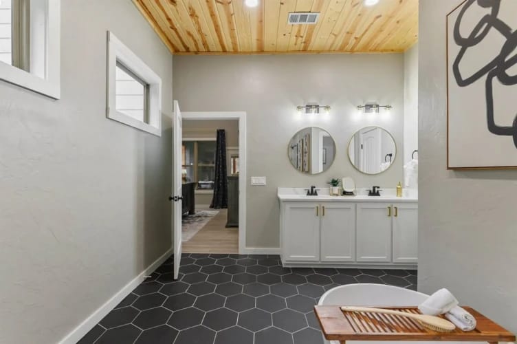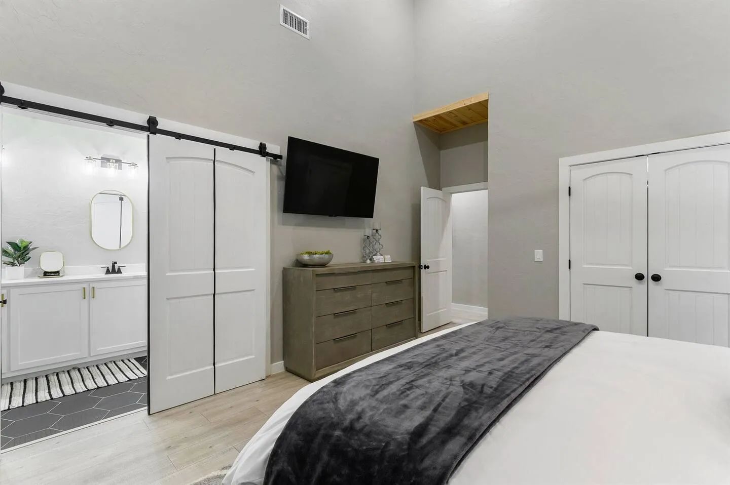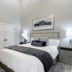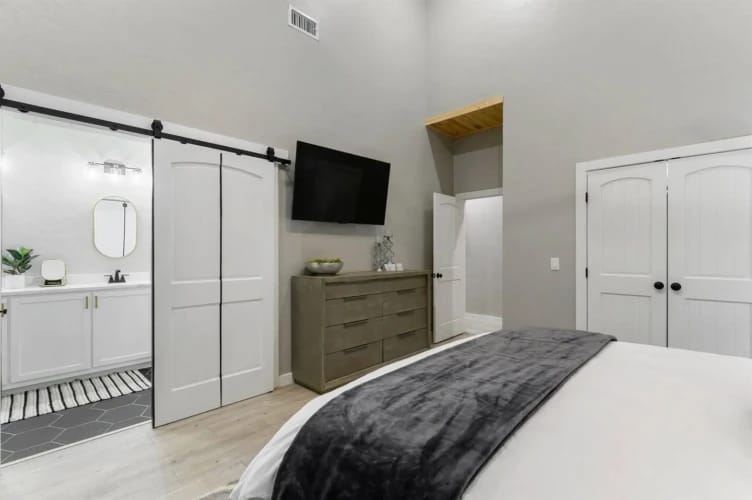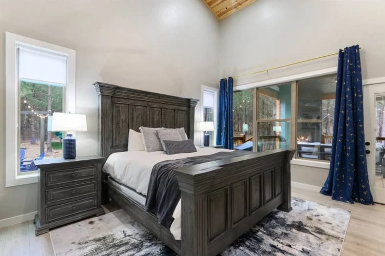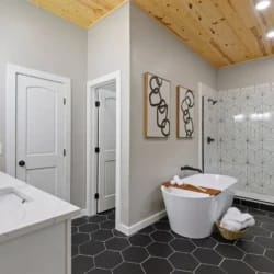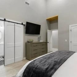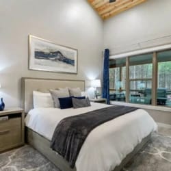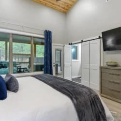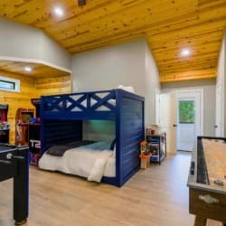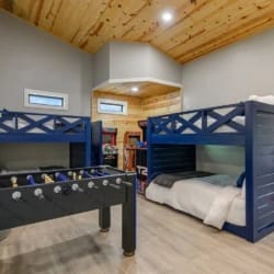 All Your Promises offers restful retreats designed with serenity in mind when the night draws in. King Suites feature premium bedding, room-darkening curtains, and private ensuite bathrooms with deep soaker tubs and walk-in showers. The spacious bunk loft upstairs provides fun sleeping quarters with two queen-over-queen bunk beds, perfect for kids or friends looking to relive childhood sleepovers. Like the rest of the cabin, each bedroom exudes a thoughtful charm — simple elegance paired with the comfort that guarantees a peaceful night’s sleep.