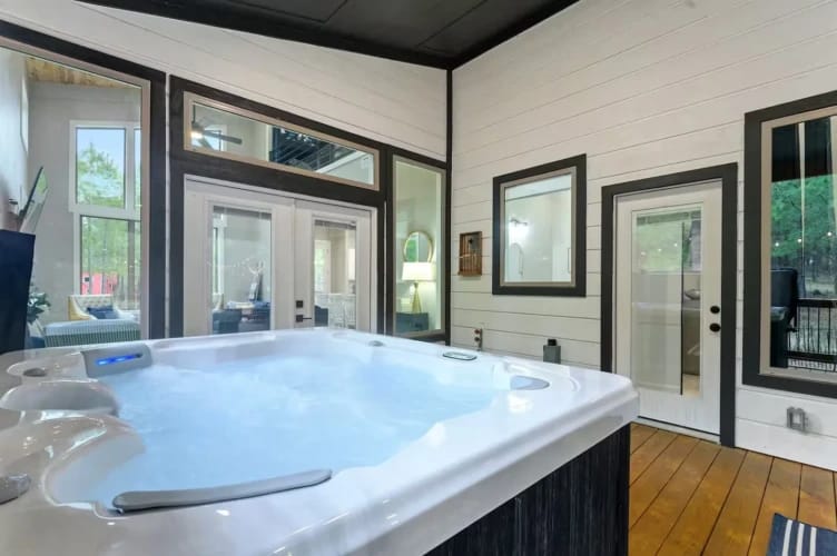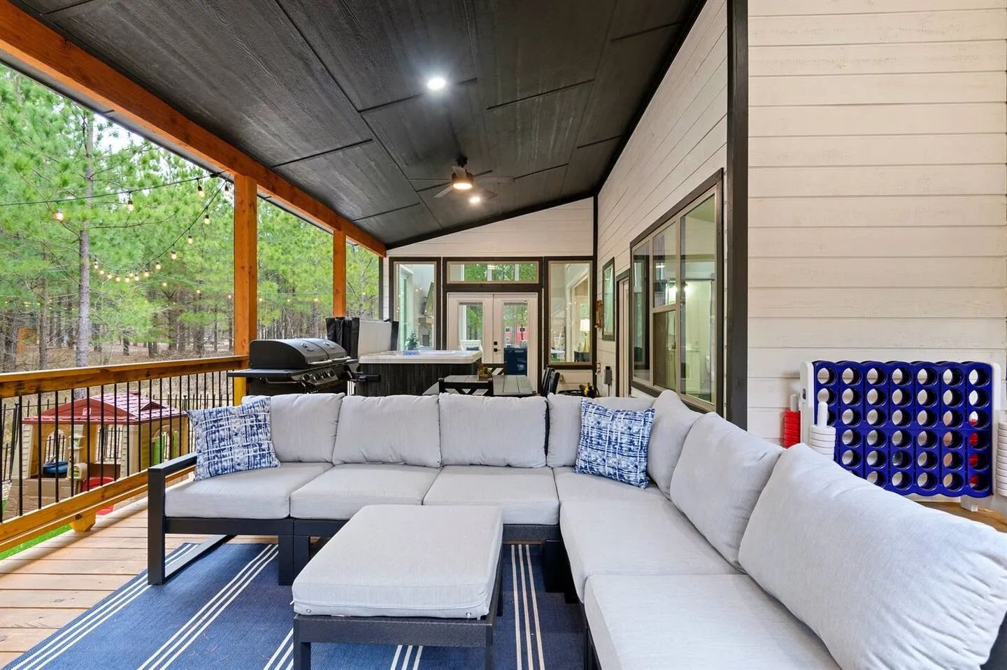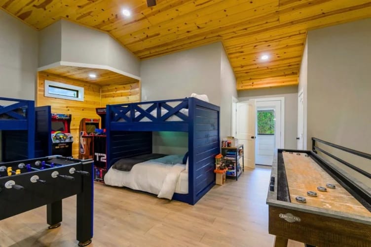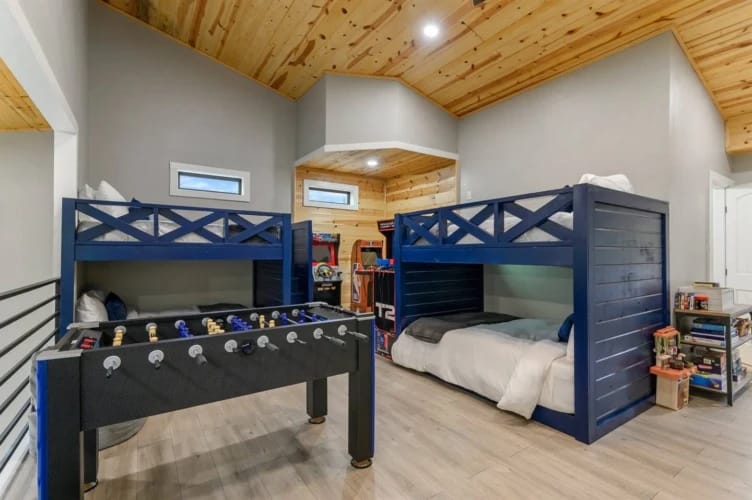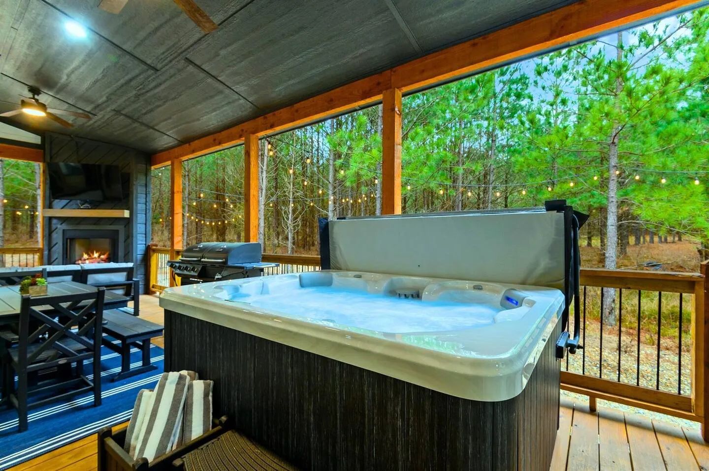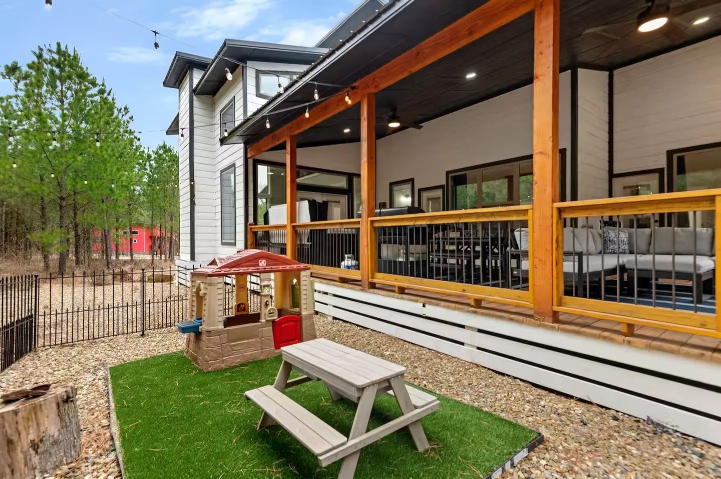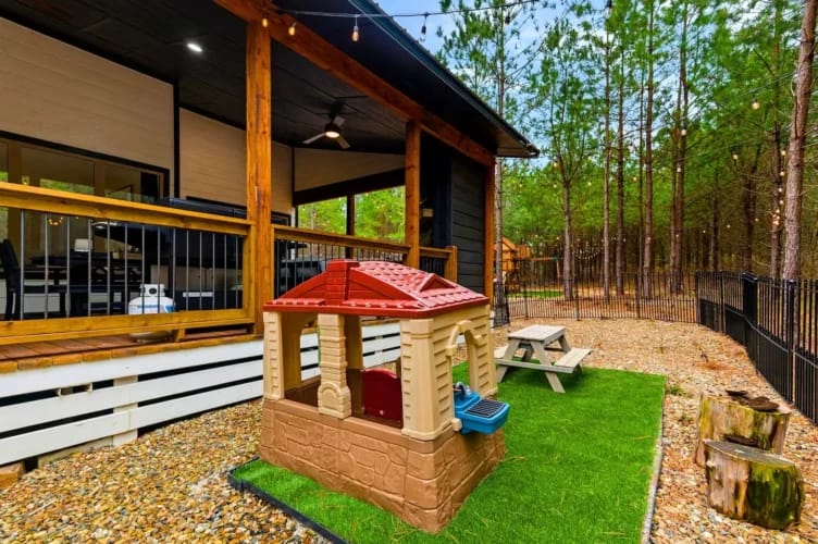 Modern 2-Story Cabin with Hot Tub, Firepit, Game Loft & Outdoor Playhouse