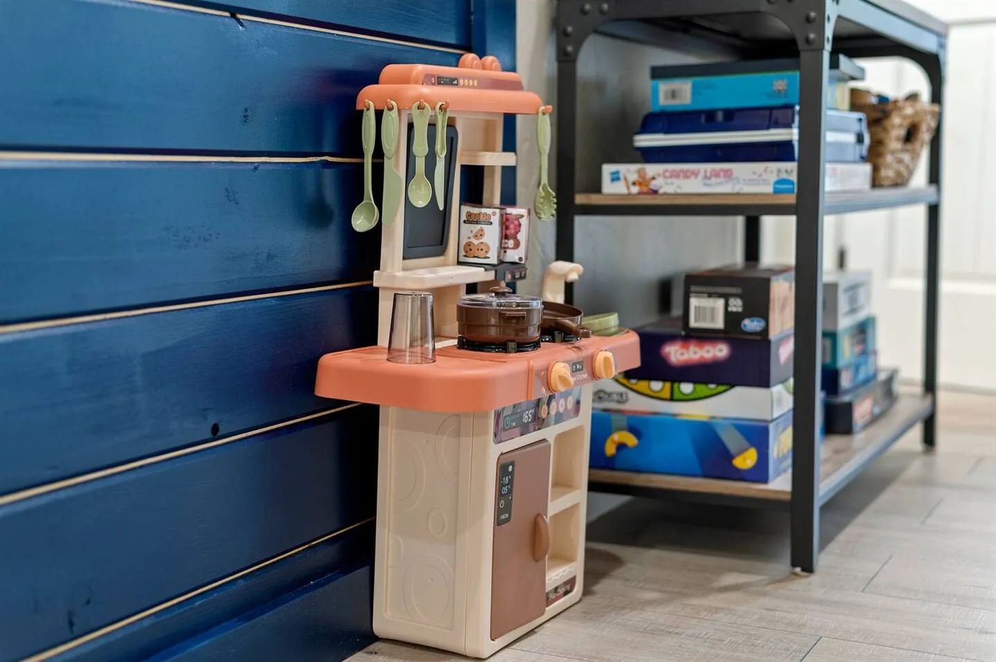 Entertainment is at the heart of All Your Promises, and the upstairs game loft delivers on every level. Guests can dive into nostalgia with arcade classics like NBA Jam, Out Run, and Terminator 2, or challenge each other to friendly games of foosball or shuffleboard. A carefully curated selection of board games is available for cozy nights, while laughter and competition echo through the loft. It’s a space that bridges generations — where parents introduce their kids to the games they once loved and make new memories in the process.