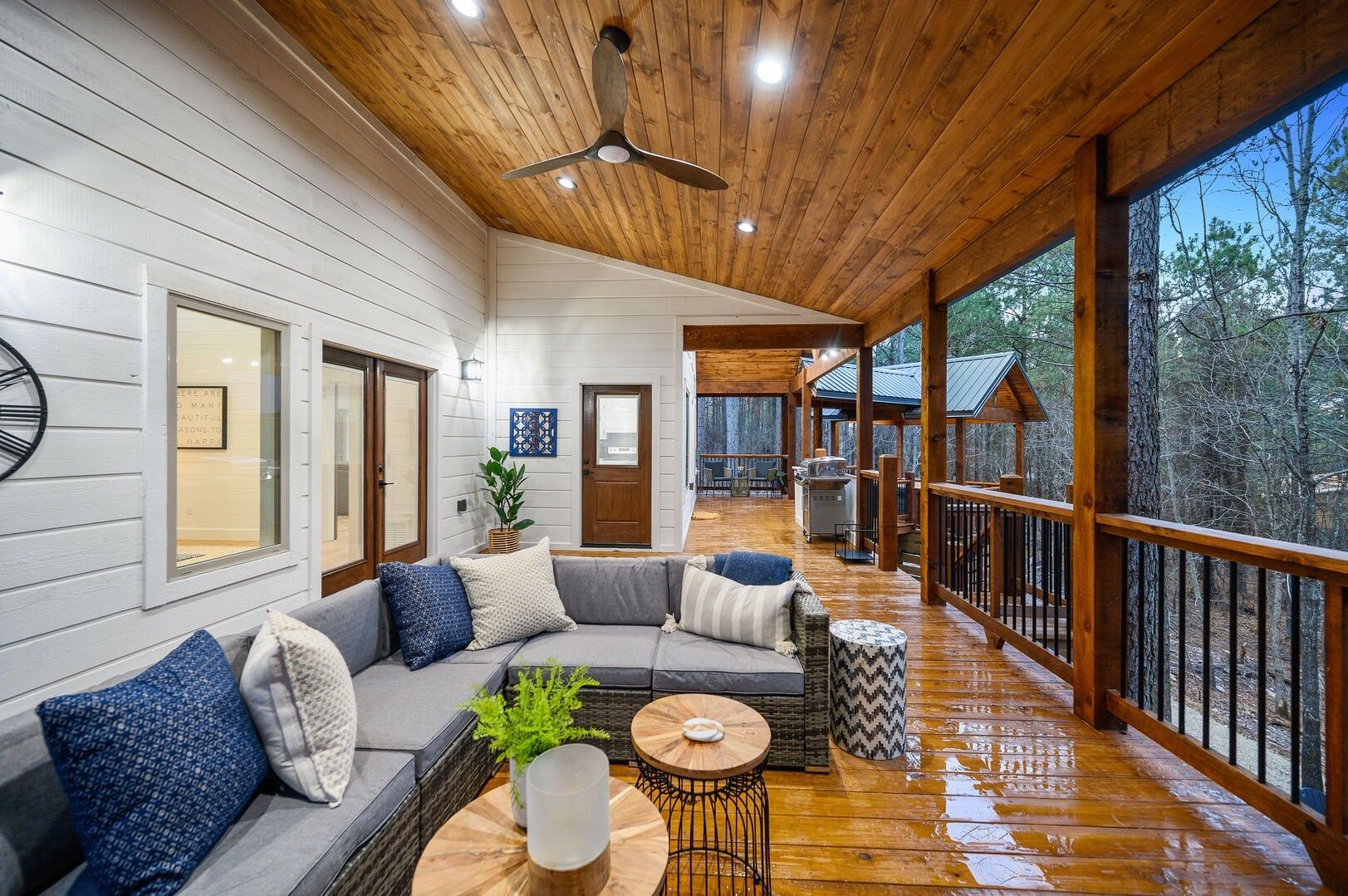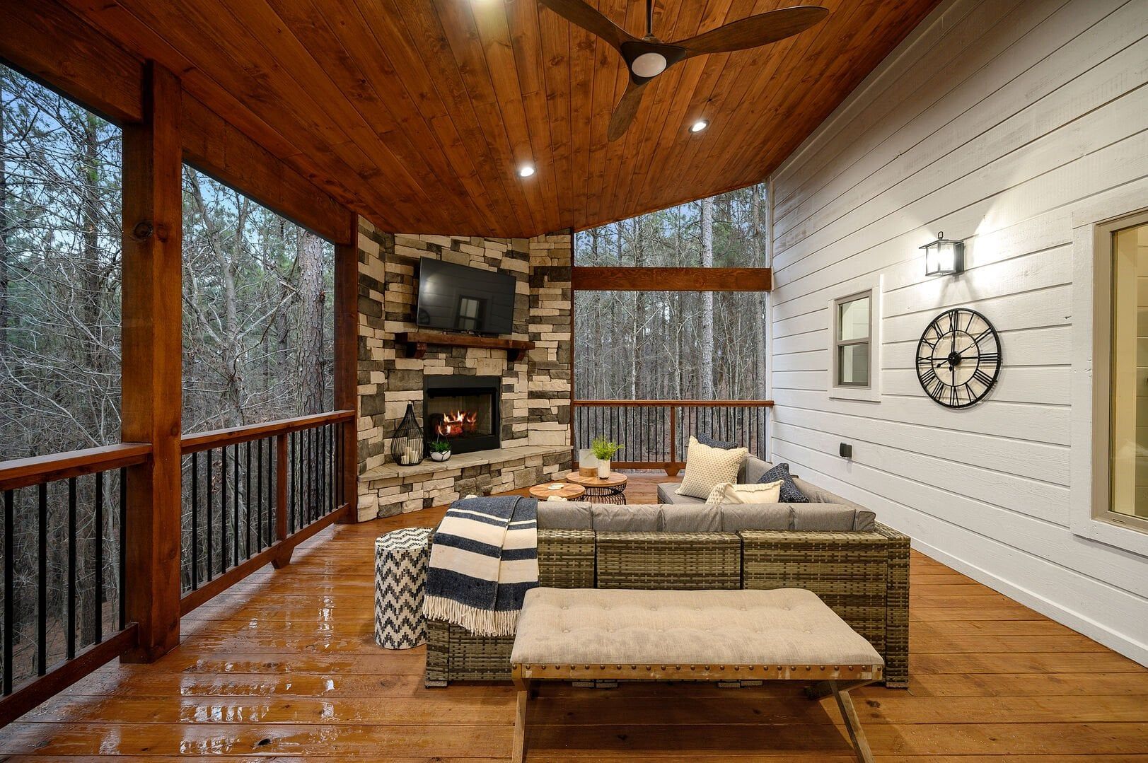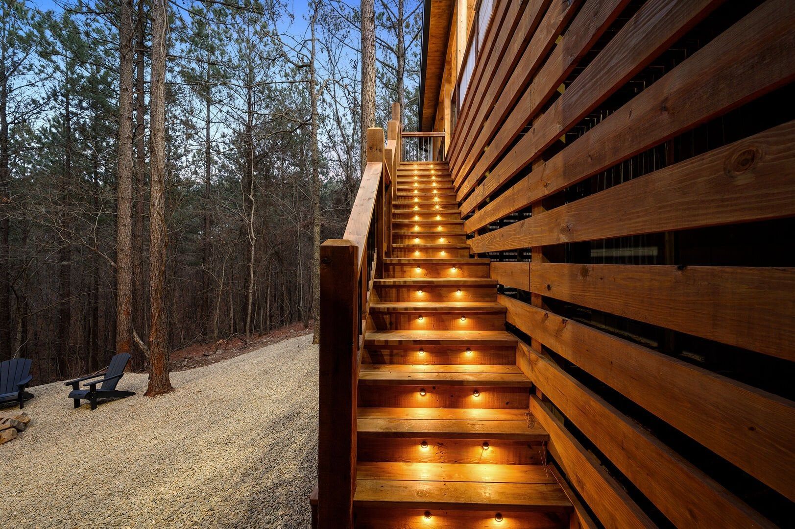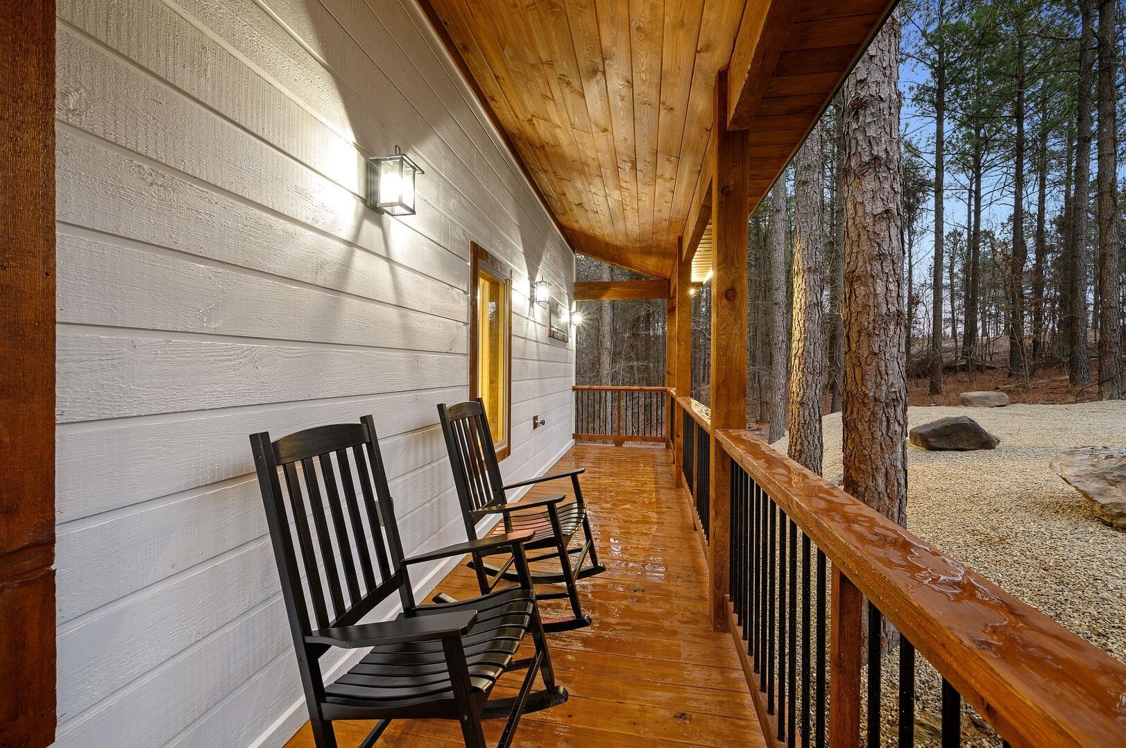 Stepping outside, visitors will be enchanted by the sprawling deck that boasts breathtaking views of tall pine trees enveloping the cabin. The outdoor space is thoughtfully designed to make the most of the serene environment. A gazebo-style hot tub enhances the experience, offering a tranquil escape under the stars with a bottle of wine, completing Allium Inn’s outdoor living experience.
