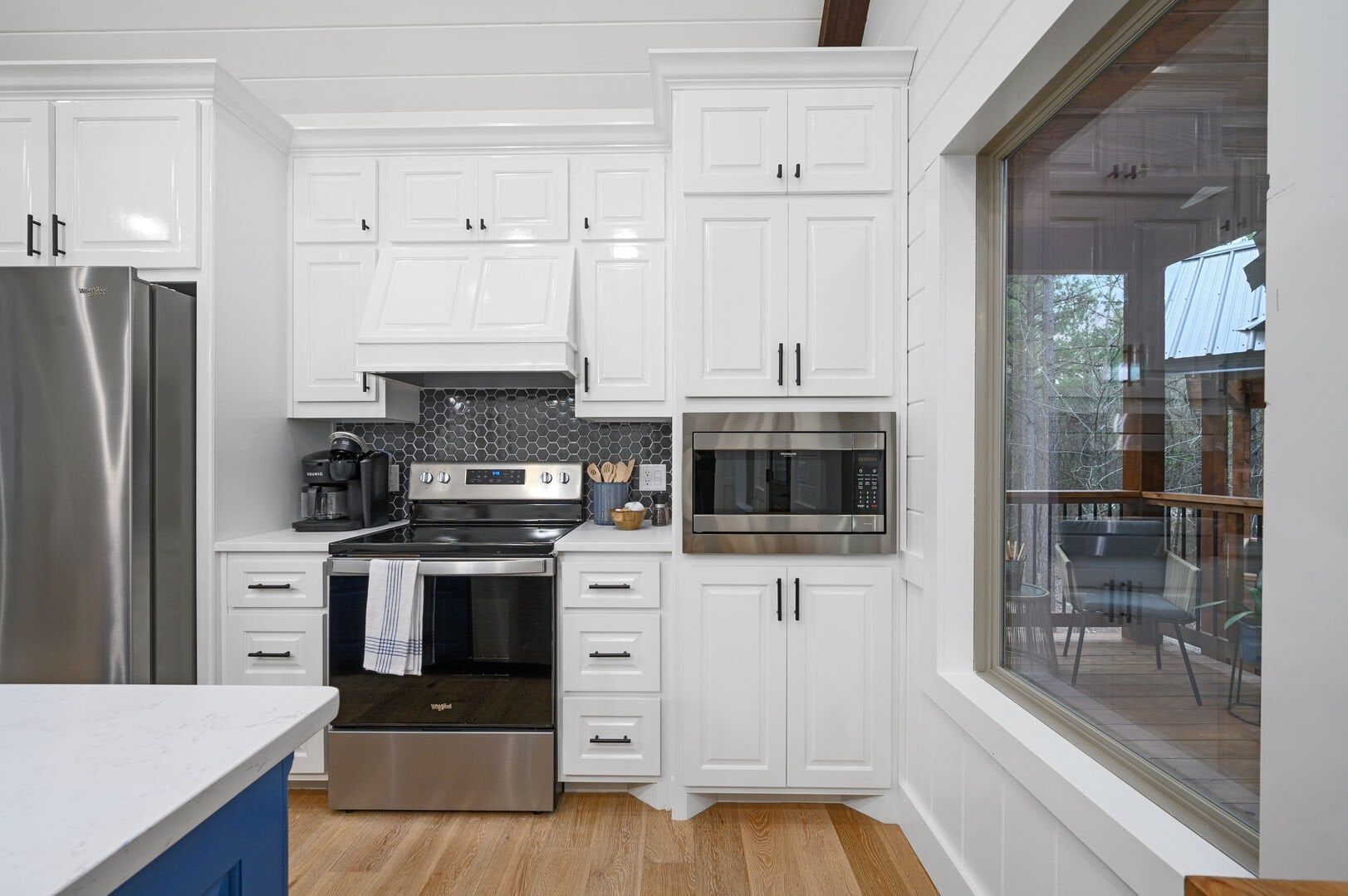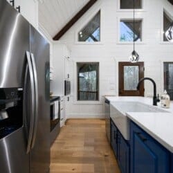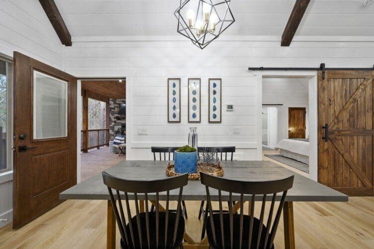 The kitchen at Allium Inn is a culinary dream come true, designed for functionality and style. With gorgeous wood cabinets and state-of-the-art appliances, guests will find themselves inspired to create delicious meals. From preparing breakfast to enjoying evening dinners, the modern appliances, including a spacious fridge, dishwasher, and stove, make cooking enjoyable and easy. Guests can sip their morning coffee using the complimentary coffee bar equipped with a Keurig machine. They can enjoy their first sips at the charming farmhouse-style dining table or outdoor dining area while enjoying the beautiful surroundings.