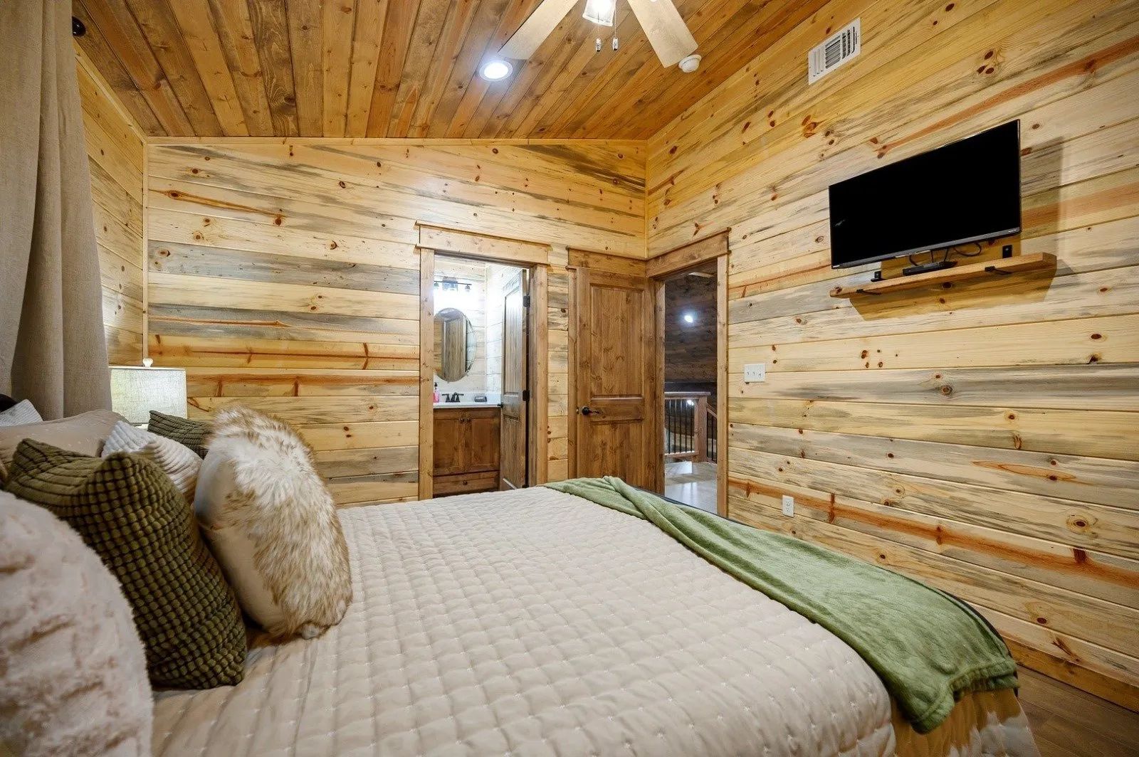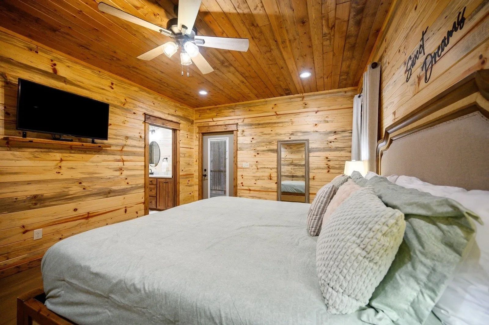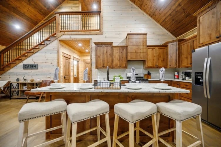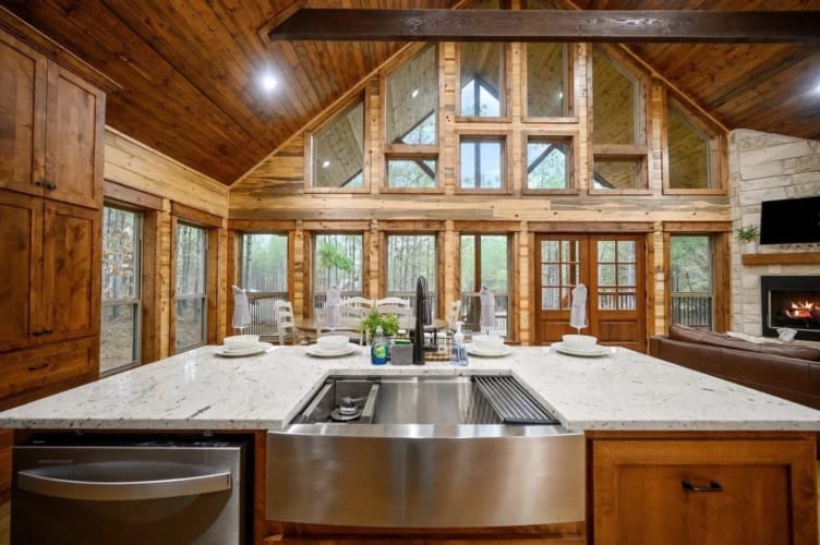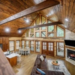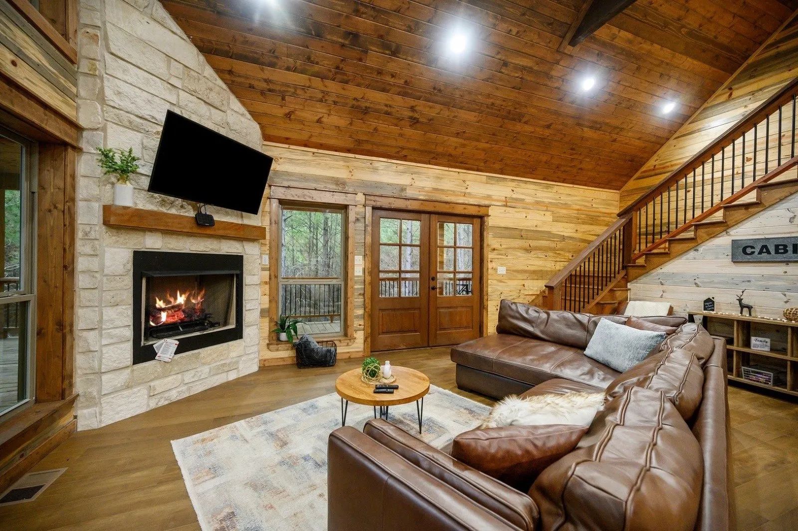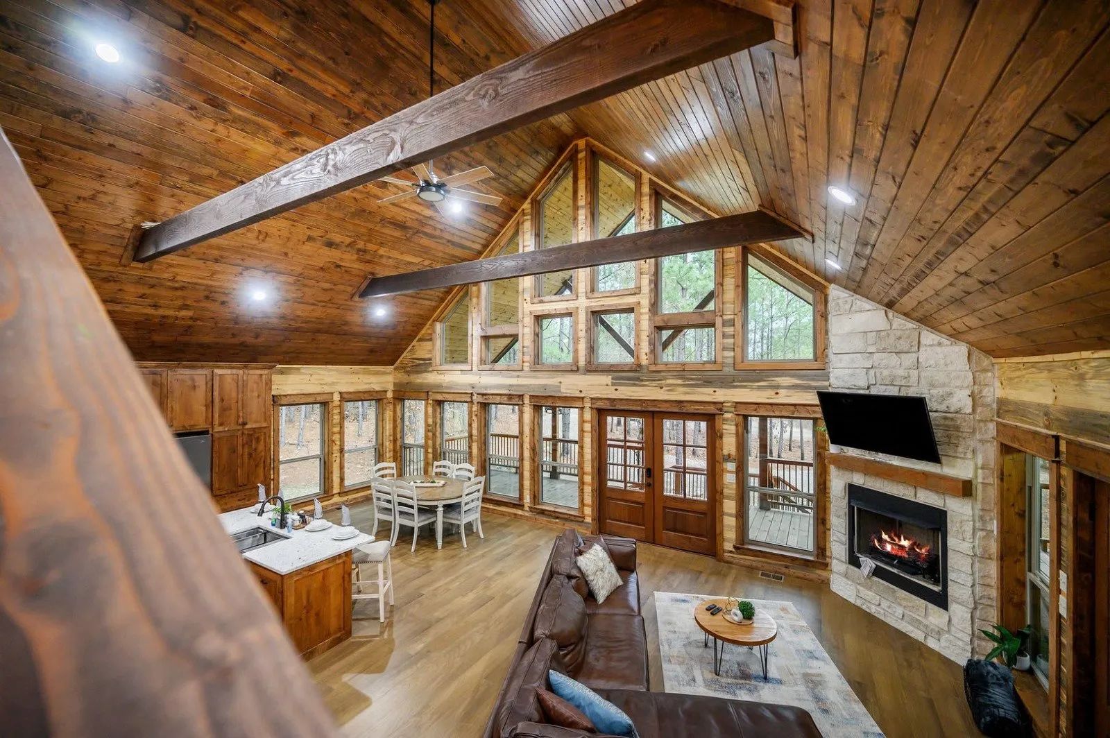 Stepping into Blue Horizon immediately welcomes guests into a warm and tranquil atmosphere where modern design blends beautifully with the natural surroundings, creating an inviting retreat perfect for families and friends who want to experience Broken Bow cabins in comfort and style. The moment the door opens, the soft glow of natural light filters through the tall windows, illuminating the textures and tones that make Blue Horizon feel both luxurious and down-to-earth. As guests settle in, they quickly sense how effortlessly the cabin promotes relaxation, connection, and adventure all in one place, making Blue Horizon the kind of getaway that lingers in memory long after checkout.