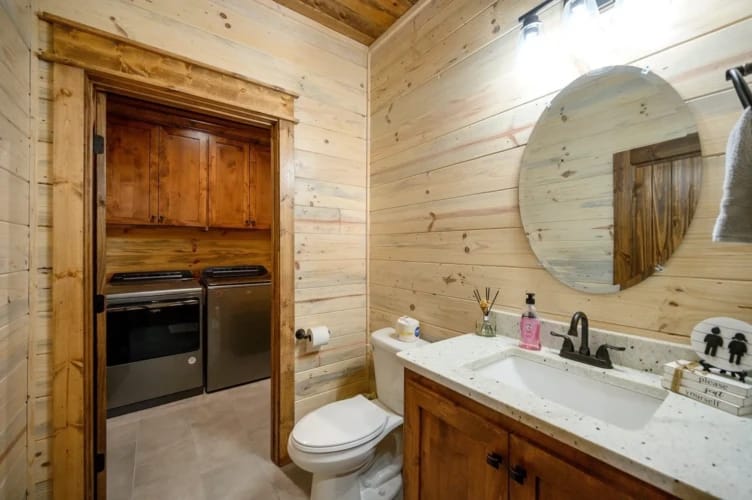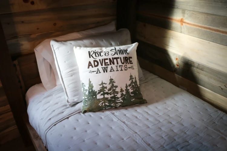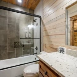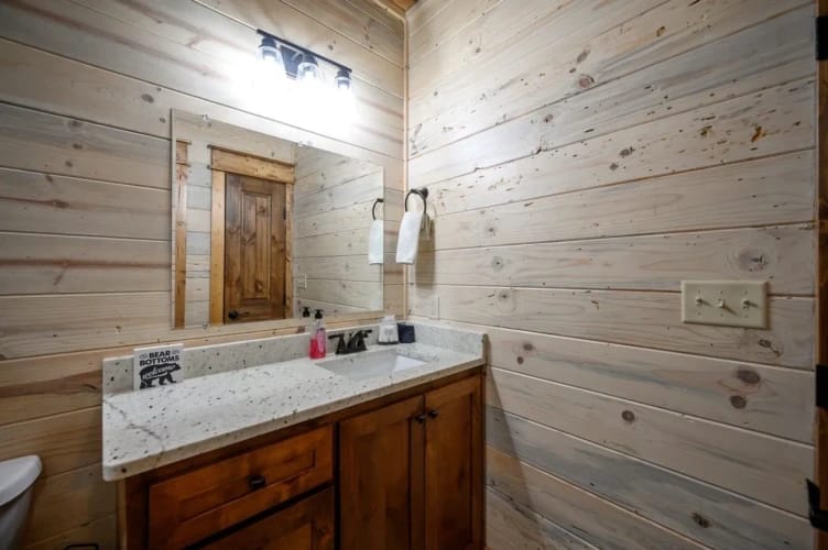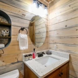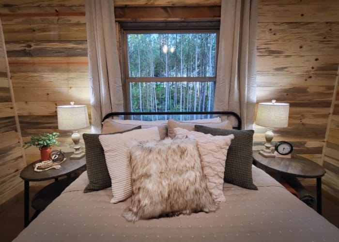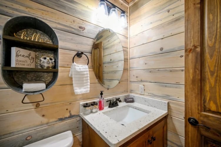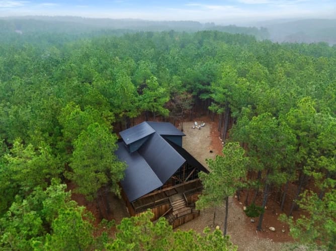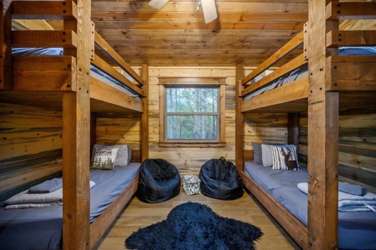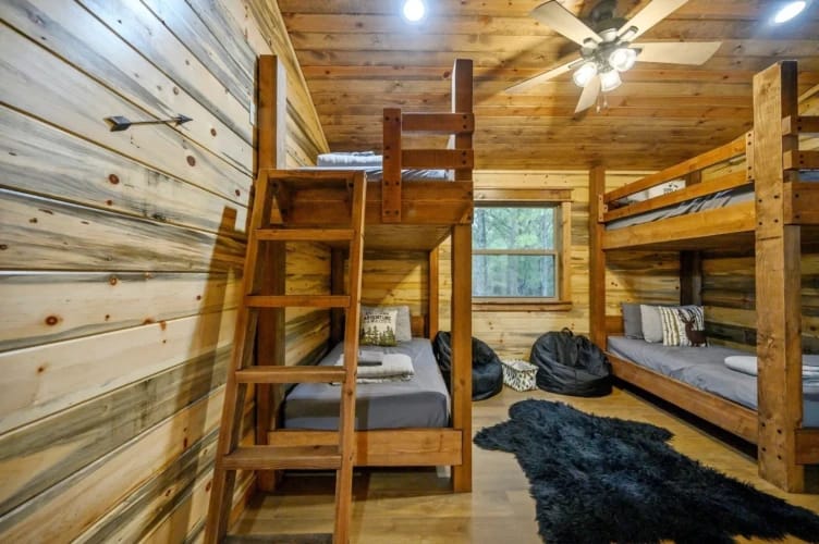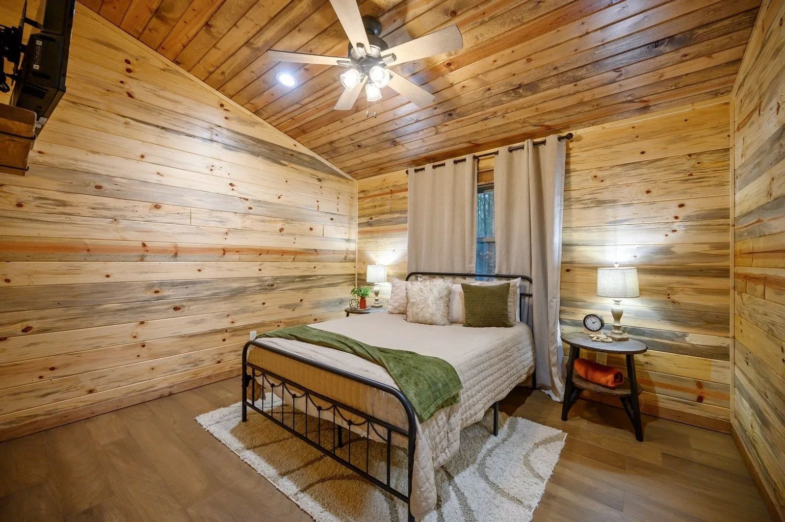 The highlight of many vacations at Blue Horizon is undoubtedly the private pool and hot tub, which transform the cabin into a personal oasis from morning until well past sunset. Guests love starting their day with a refreshing dip or ending the evening with a relaxing soak in the hot tub, watching the sky darken above the trees. This cabin enhances these moments by offering comfortable seating areas around the pool where guests can lounge, sunbathe, or listen to the quiet hum of nature. As night falls, the firepit at Blue Horizon becomes a natural gathering point, offering the perfect place for stargazing, storytelling, and roasting marshmallows under the vast Oklahoma sky. From its curated interiors to its inviting outdoor spaces, this cabin provides the perfect balance of comfort, convenience, and natural beauty for families, couples, and groups seeking an unforgettable escape.