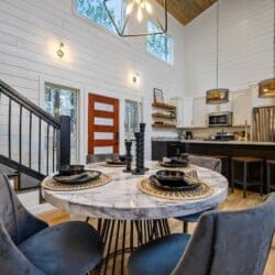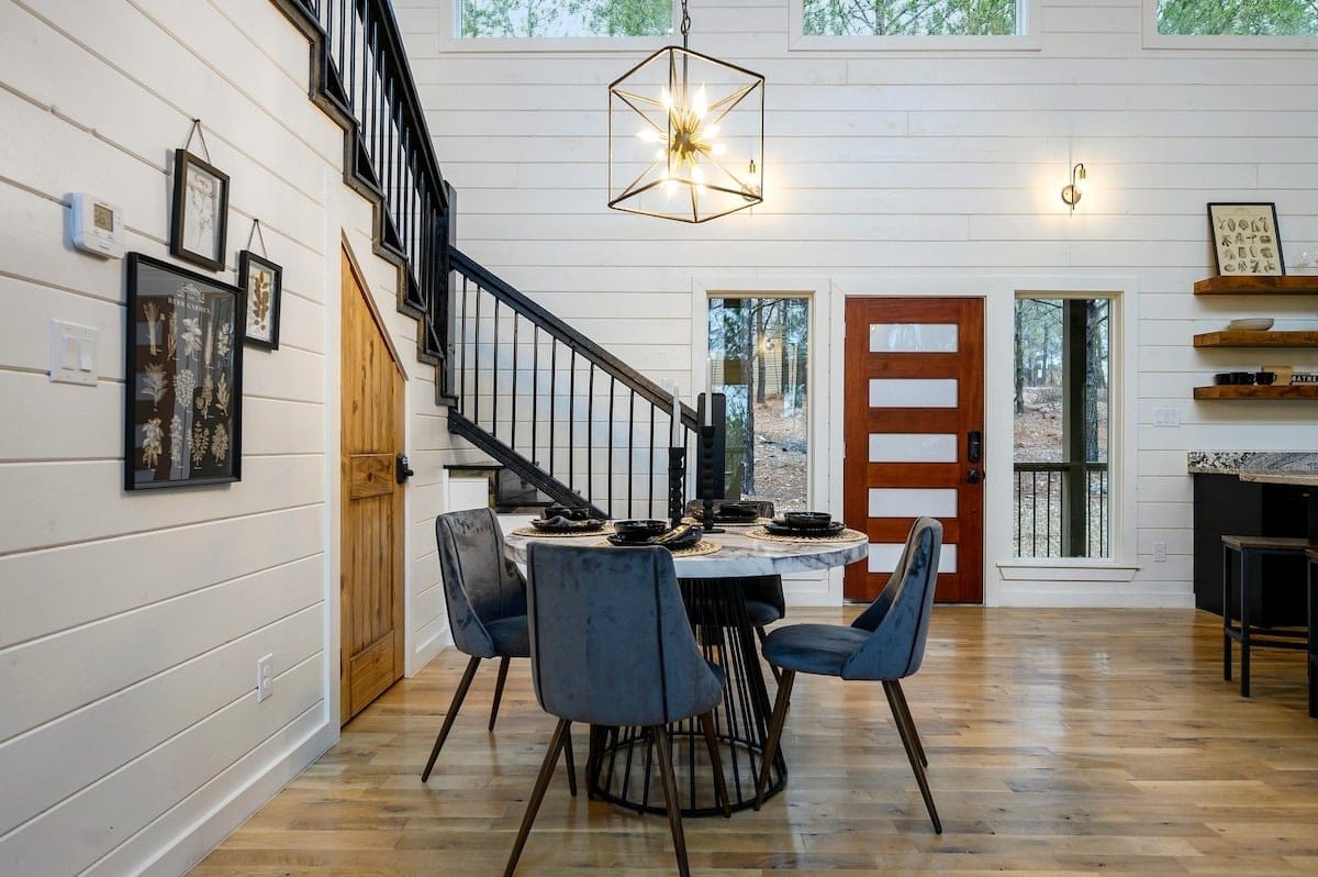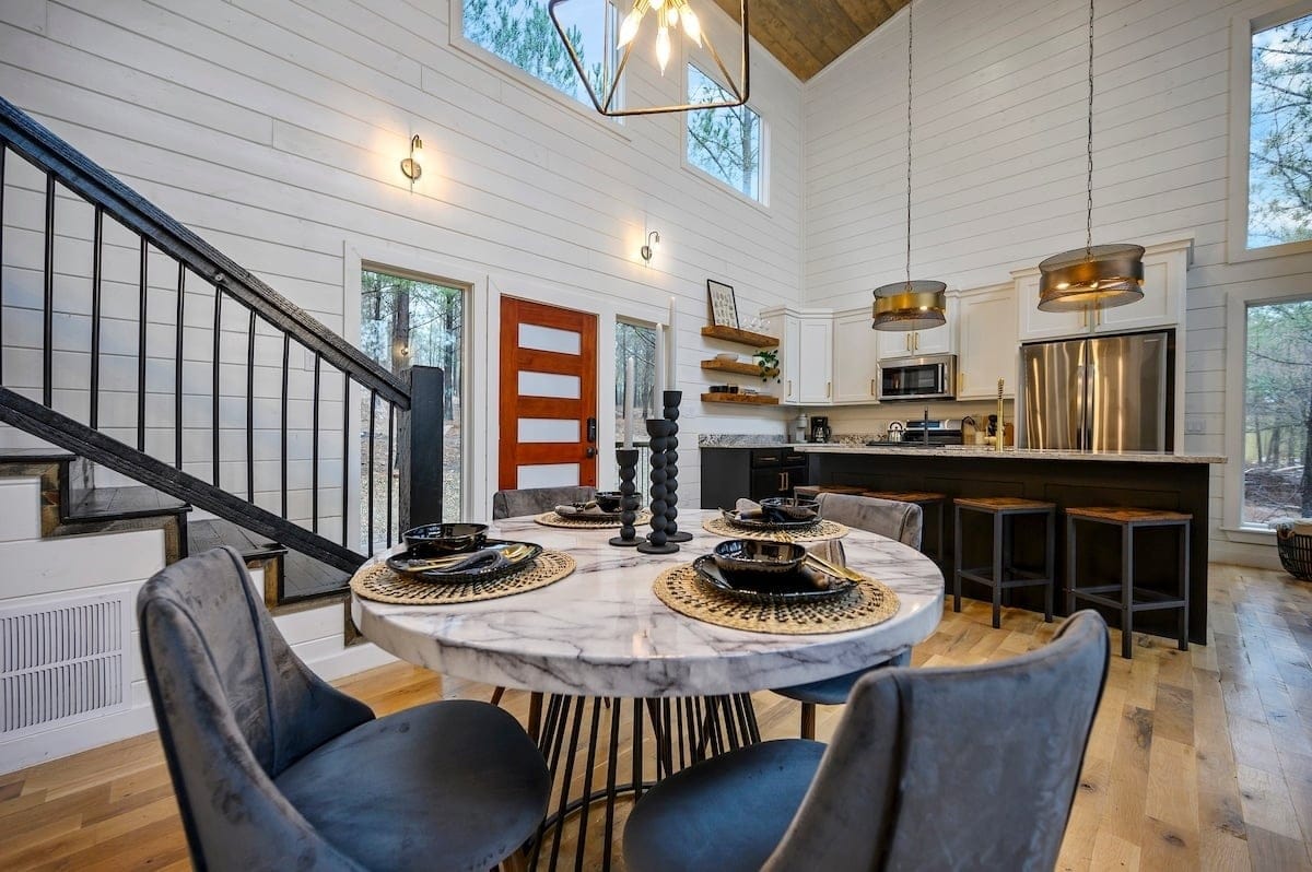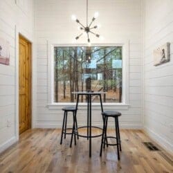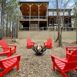Ctrl Alt Del is a midcentury-style cabin surrounded by tall pines in beautiful Broken Bow, Oklahoma. Perfect for couples or families, this cabin blends comfort and fun in a peaceful forest setting. Nestled over an acre of private wooded land, it offers space to relax and reconnect with nature while enjoying the style and ease of a luxury cabin.
