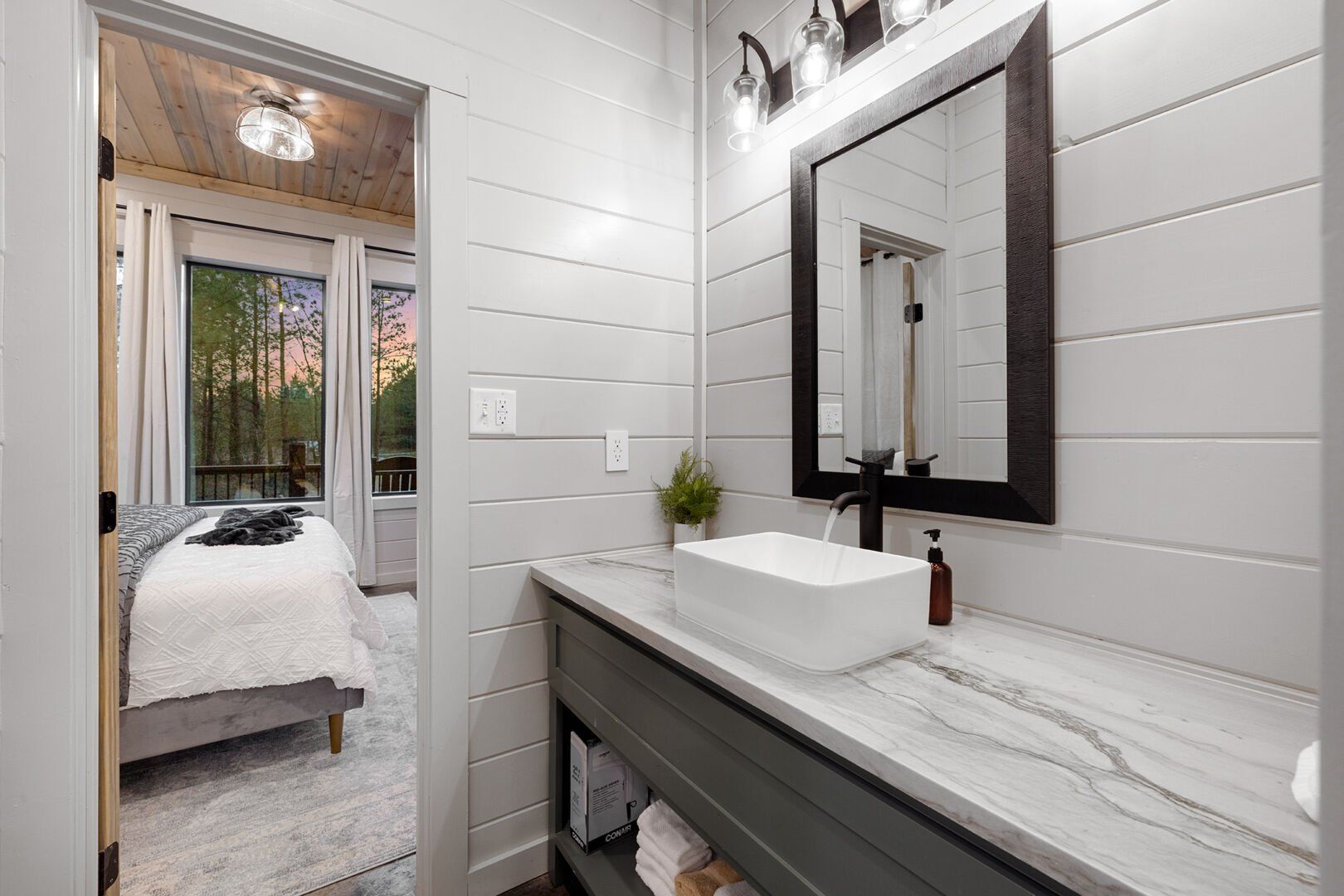This cabin also has all the conveniences that make a stay easy, including high-speed Wi-Fi, self-check-in through a smart keypad, and a full-size washer and dryer. Every detail has been considered to create a space that feels just like home, but even better.