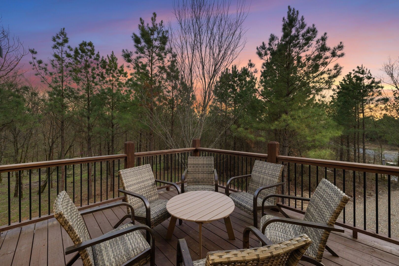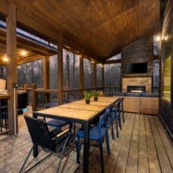 Decked Out is a modern, stylish cabin located in the heart of Broken Bow, Oklahoma. It is designed for families or groups seeking a peaceful retreat without sacrificing comfort or fun. With spacious indoor living, thoughtfully crafted outdoor areas, and a cozy yet upscale design, this cabin welcomes guests into a setting where memories are made, stories are shared, and everyone feels at home.