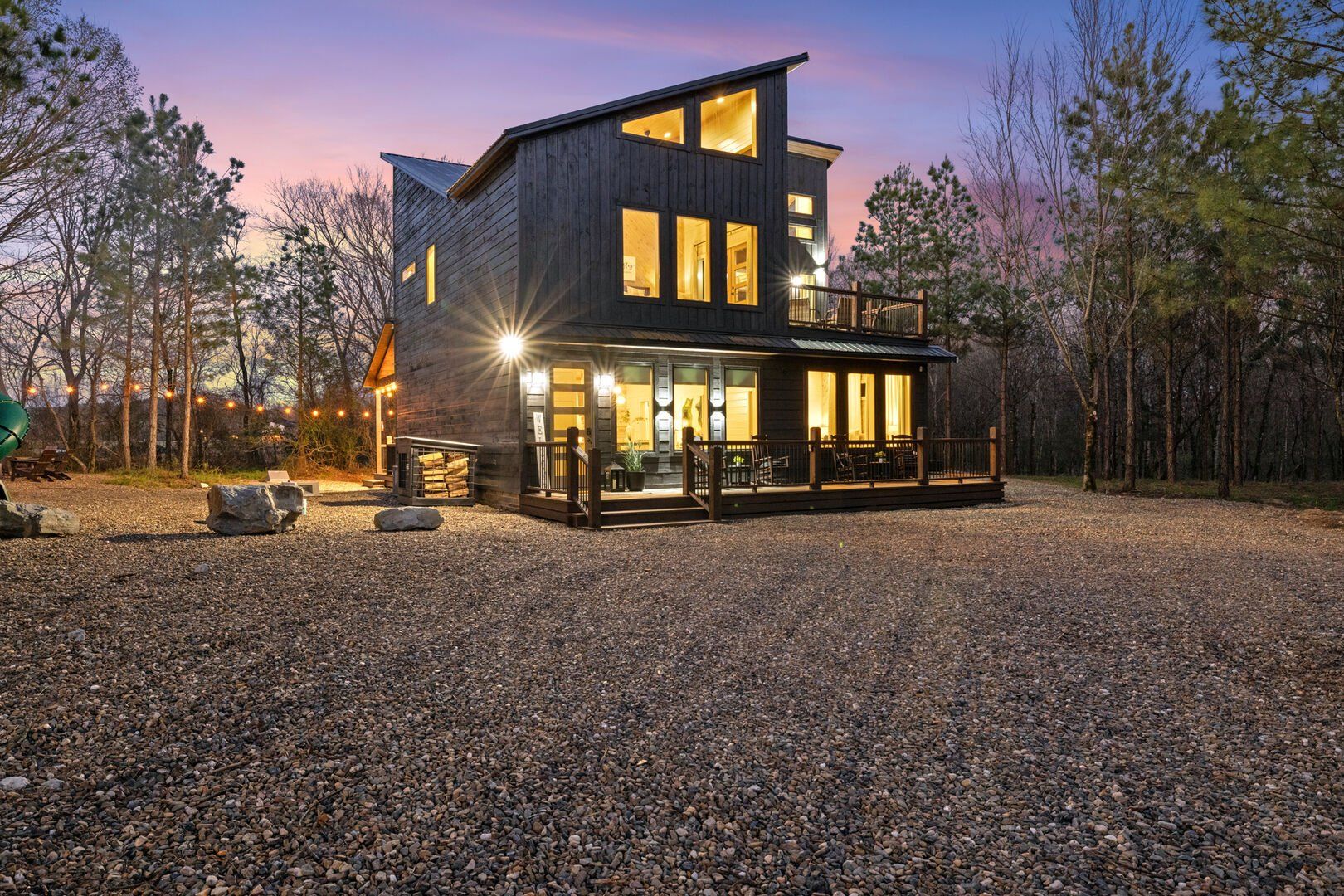 I cannot say enough about this luxurious place! We love to travel and travel quite often and the modern look of our cabin as well as all of the amenities exceeded our expectations. The view from the windows in the bedrooms upstairs were to die for. There was a ton of space and the beds are extremely comfy. The playground outside as well as the game room upstairs kept my kids busy for hours. It is extremely well lit at night with cute lights around the deck and play area that makes it feel so relaxing! Definitely 10/10 recommend!