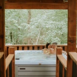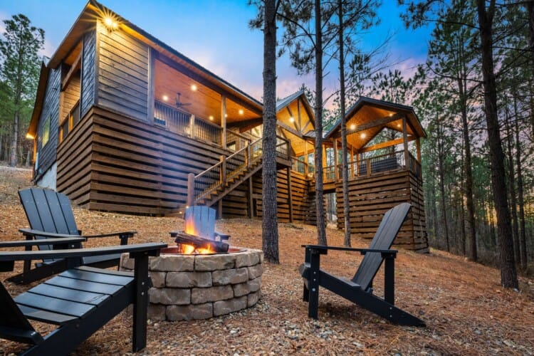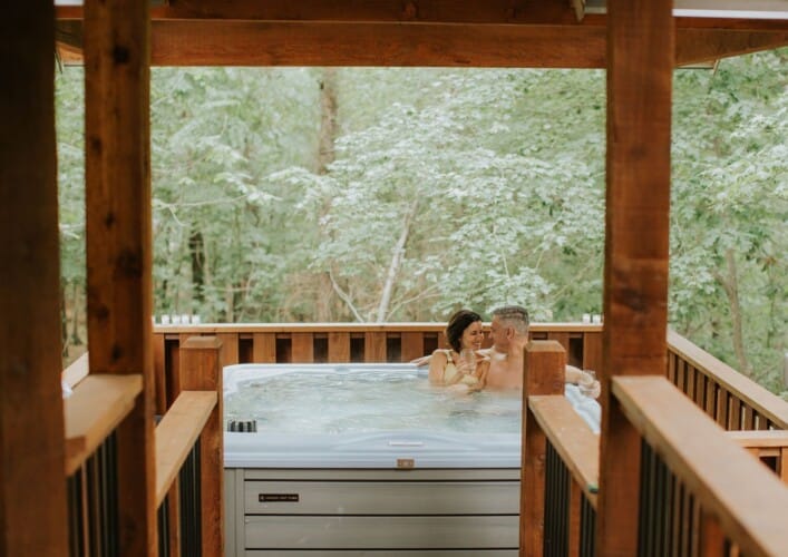 Romantic Cabin Retreat with King Bed, Spa Bath, Hot Tub, Fireplace, and Forest Views