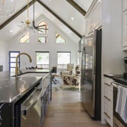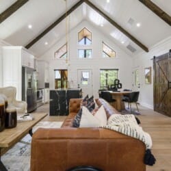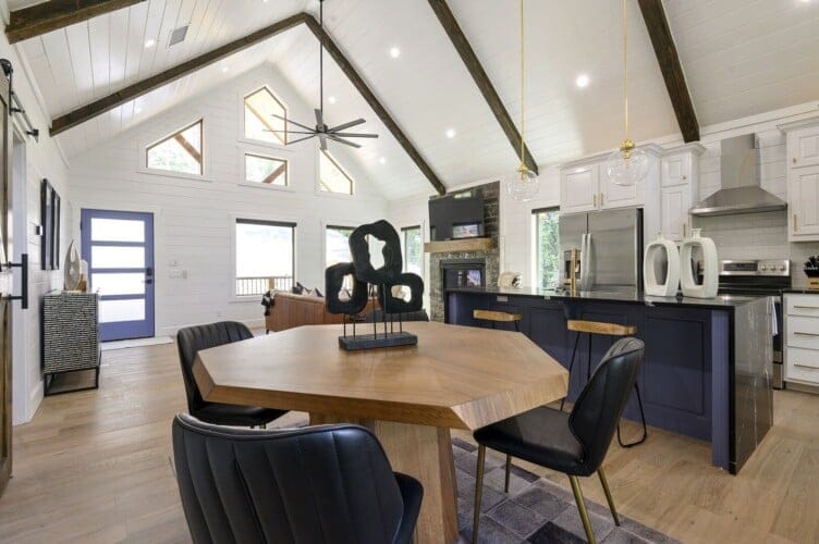 Do Not Disturb cabin invites couples to experience a true escape into the peaceful woods of Broken Bow. This modern getaway offers the perfect balance between comfort and luxury, wrapped in the calm and quiet of nature. From the moment guests step through the front door, the warmth of the wood accents and the simplicity of the open layout make the space feel welcoming and soothing.