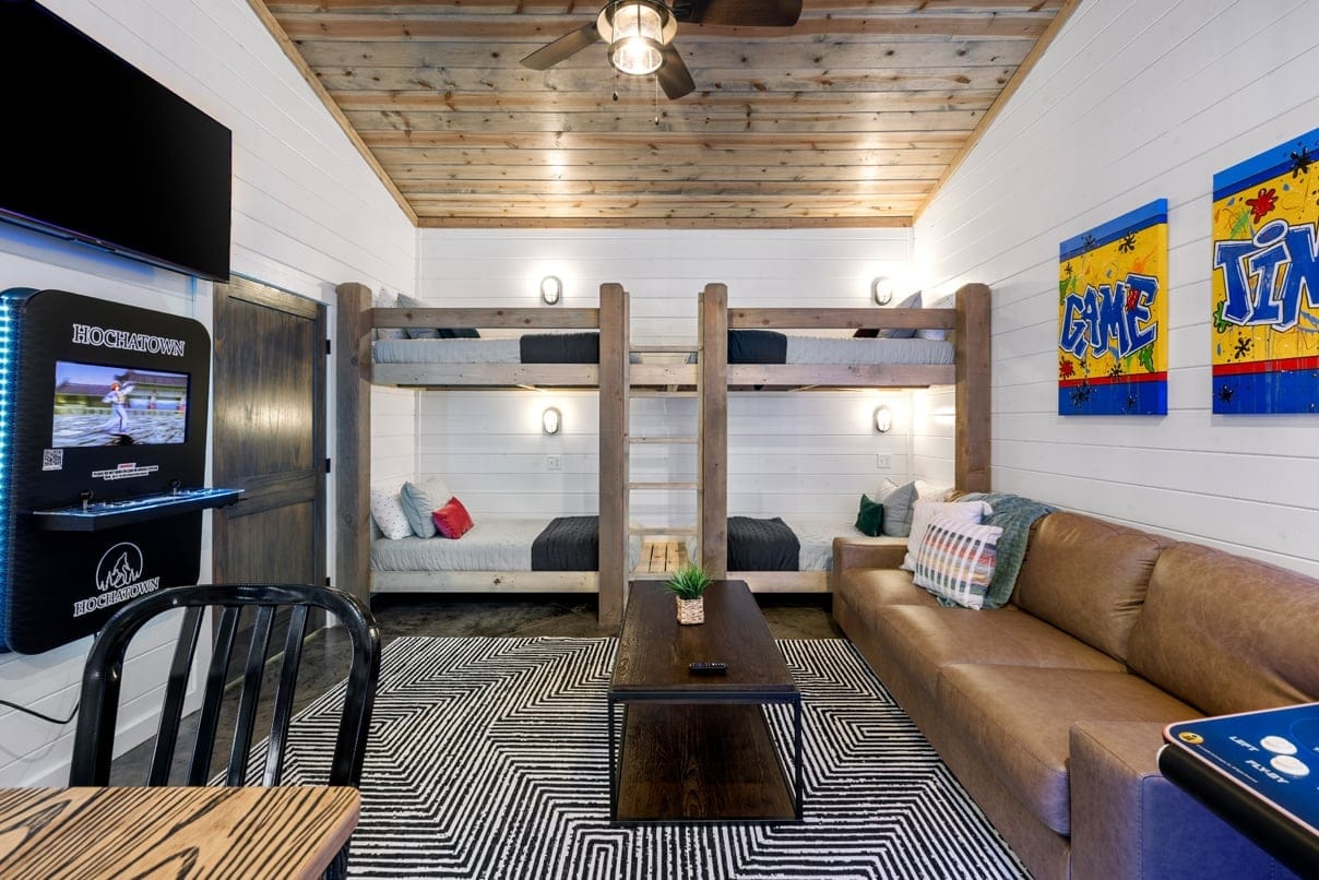 Our family has vacationed in Broken Bow multiple times, and this place is by far our favorite so far! From the moment we arrived, we were impressed with the thoughtful layout, beautiful surroundings, and the amenities. The spacious beds ensured everyone had a comfortable night’s sleep, the arcade was an absolute hit with our kids (we enjoyed them too making memories as a family.) We loved relaxing in the hot tub and appreciated the ample seating areas. While the check-in and check-out times weren’t flexible—which can be helpful, especially with children—everything else exceeded our expectations. It was everything we could have asked for in a getaway, and we can’t wait to hopefully return!
