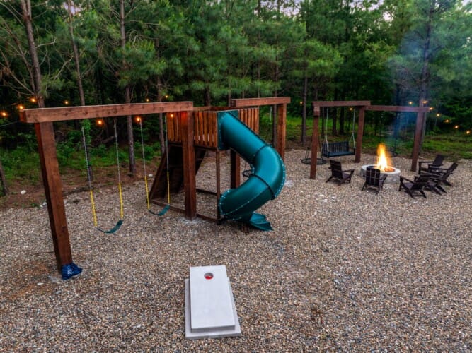 If you have kids, look no further. We stayed in this gorgeous home with two other families and no one wanted to leave. Plenty of room to spread out but also cozy to come together. From the game room, to the hot tub, to the backyard/playground area all the kids stayed busy. Plus it’s close to town to do everything else that this part of the state has to offer! We do wish there were dressers in the rooms for clothes and a pantry for all the snacks but the free kcups made up for it. Would totally stay here again and we highly recommend this property to anyone traveling to Broken Bow and looking for their next five star family vacation!