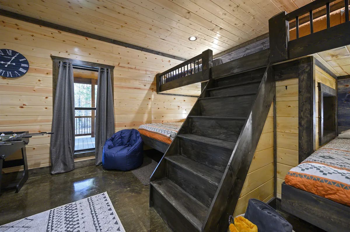 Happy Go Lucky cabin is the perfect place to make lasting memories in Broken Bow, with the hot tub and pool on one side and the playscape and fire pit on the other. Book your stay today and discover why Happy Go Lucky is one of the best Broken Bow cabin rentals available.