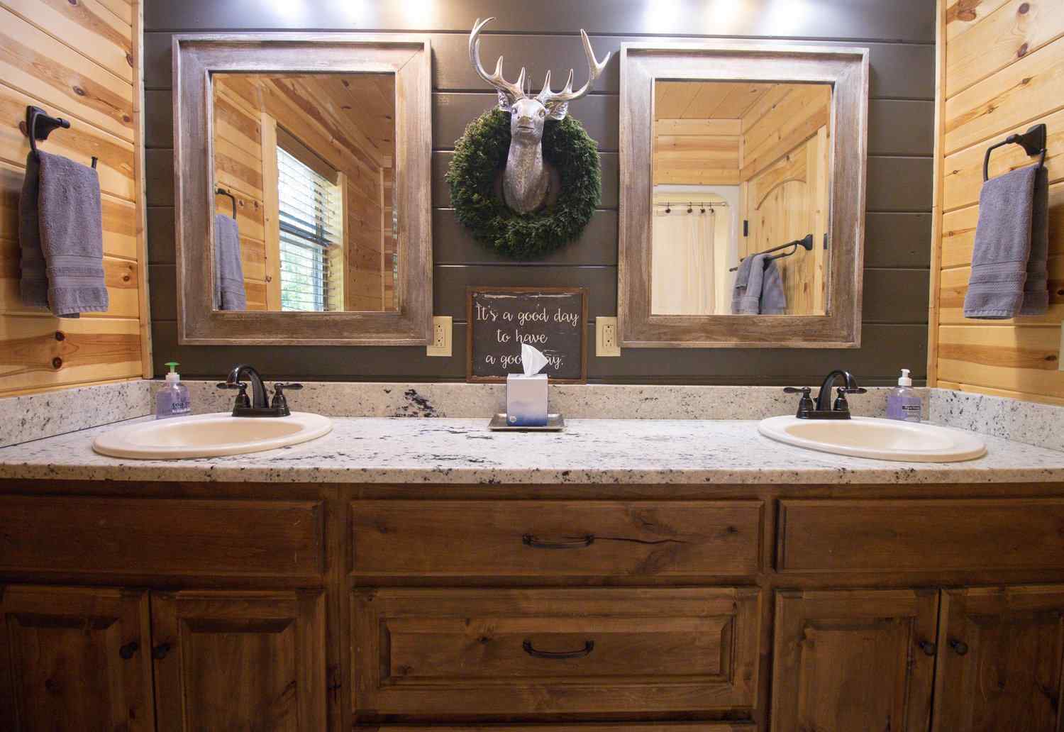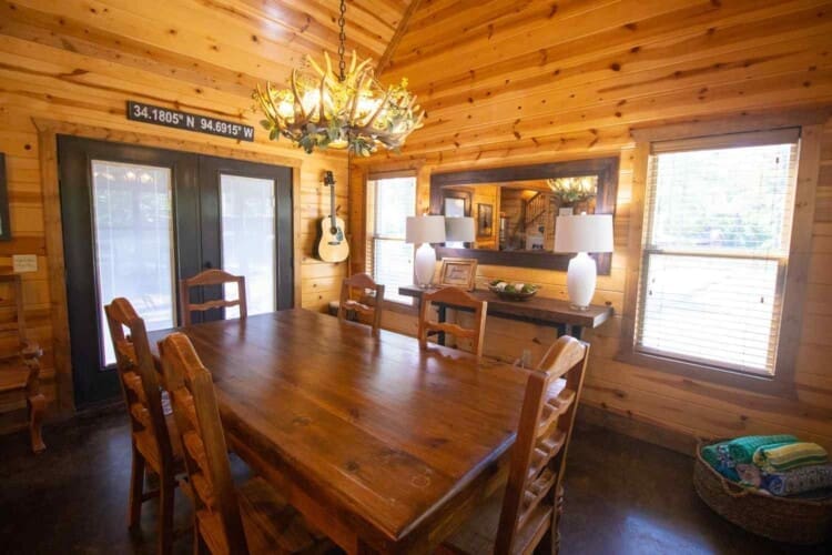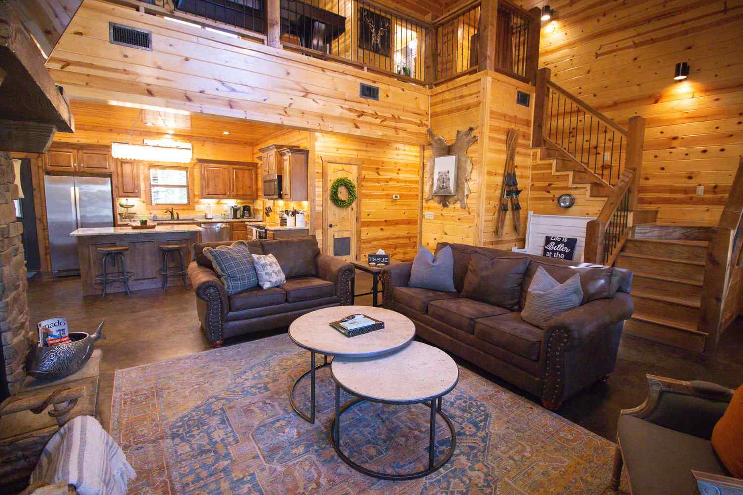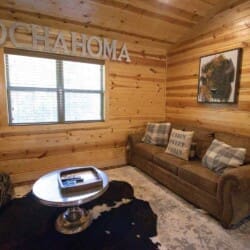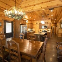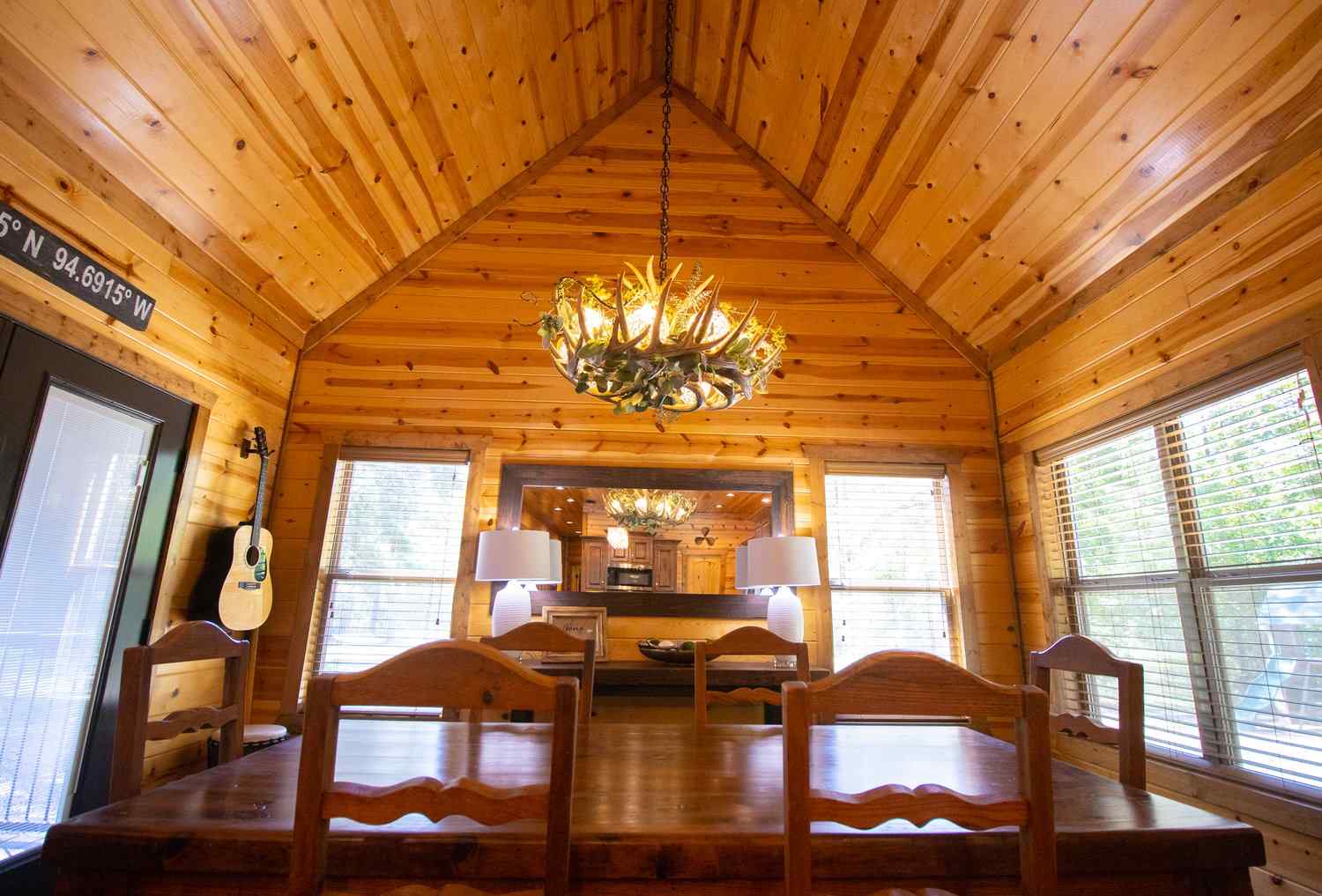 This magnificent, four-bedroom cabin is a sight in the Kaniatobe Trails development, just minutes from Broken Bow Lake and Beavers Bend State Park. Its romantic location is ideal for couples looking to spend quality time together but also offers enough room to accommodate larger families. Inside the cabin, you’ll find a luxurious open floor plan, ideal for entertaining or simply unwinding after a day of sightseeing. The upstairs loft is set up with a game room with shuffleboard, dartboard, and an Xbox hooked up to a large television, making it perfect for kids and adults looking for some leisurely fun.