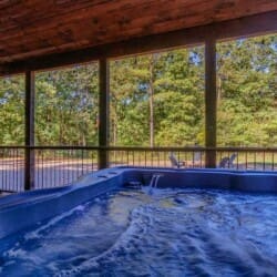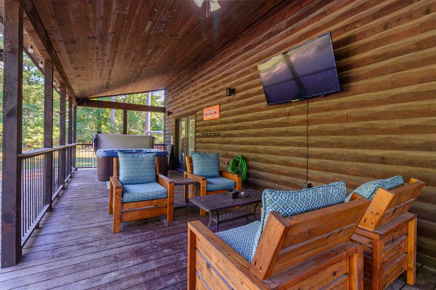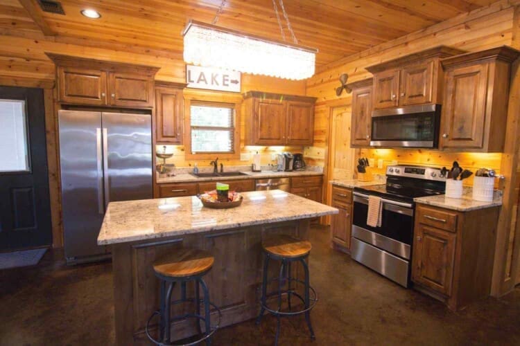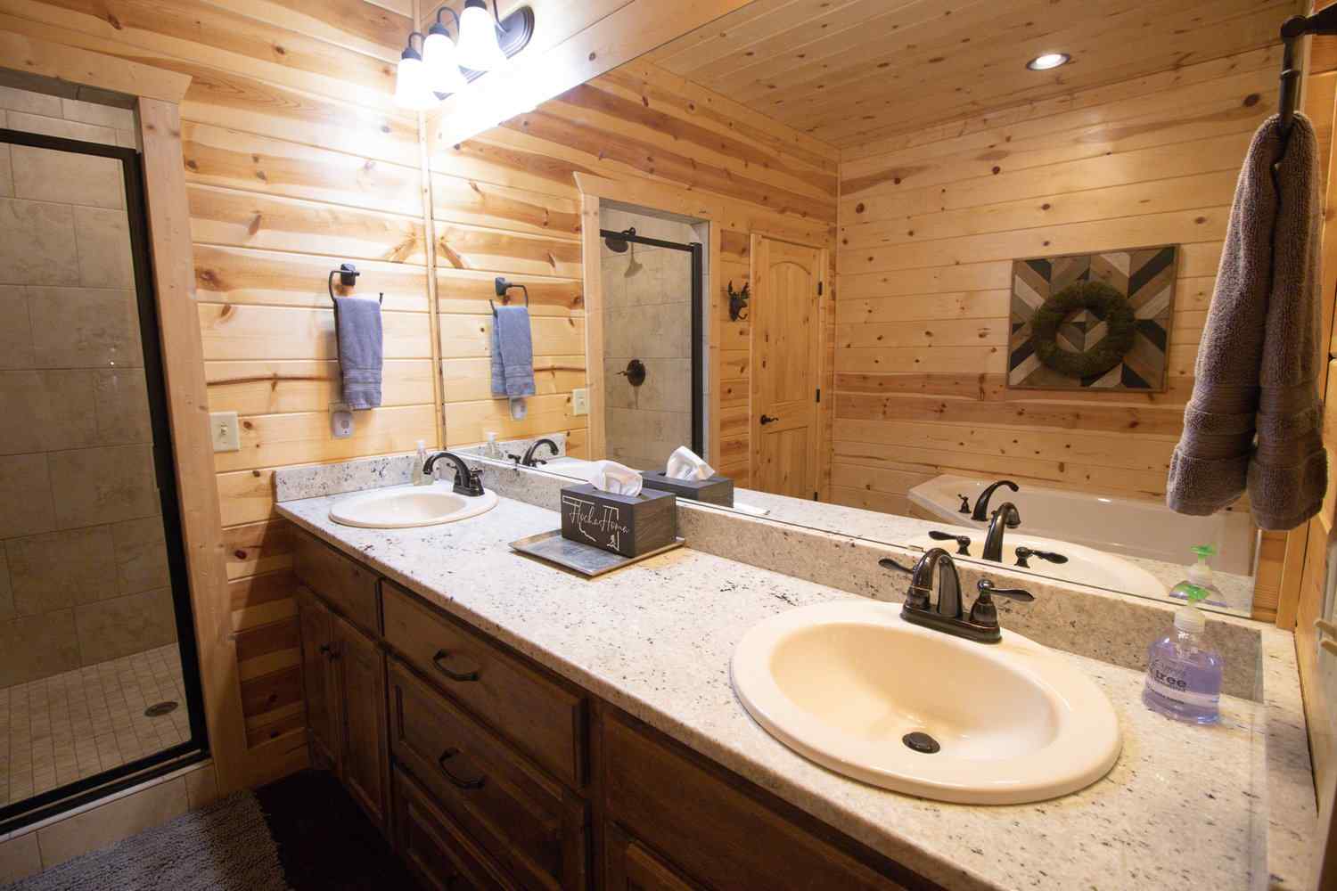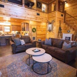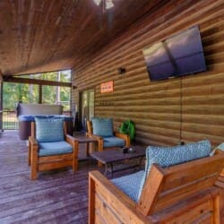 This magnificent, four-bedroom cabin is a sight in the Kaniatobe Trails development, just minutes from Broken Bow Lake and Beavers Bend State Park. Its romantic location is ideal for couples looking to spend quality time together but also offers enough room to accommodate larger families. Inside the cabin, you’ll find a luxurious open floor plan, ideal for entertaining or simply unwinding after a day of sightseeing. The upstairs loft is set up with a game room with shuffleboard, dartboard, and an Xbox hooked up to a large television, making it perfect for kids and adults looking for some leisurely fun.