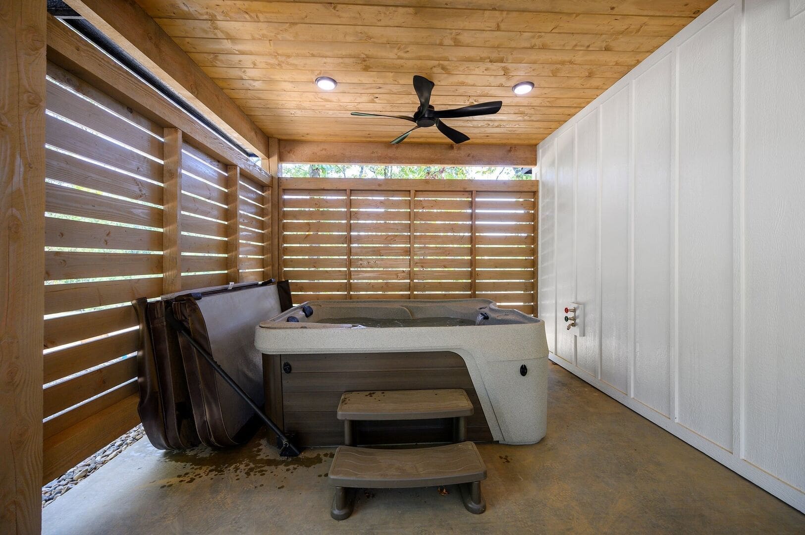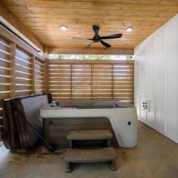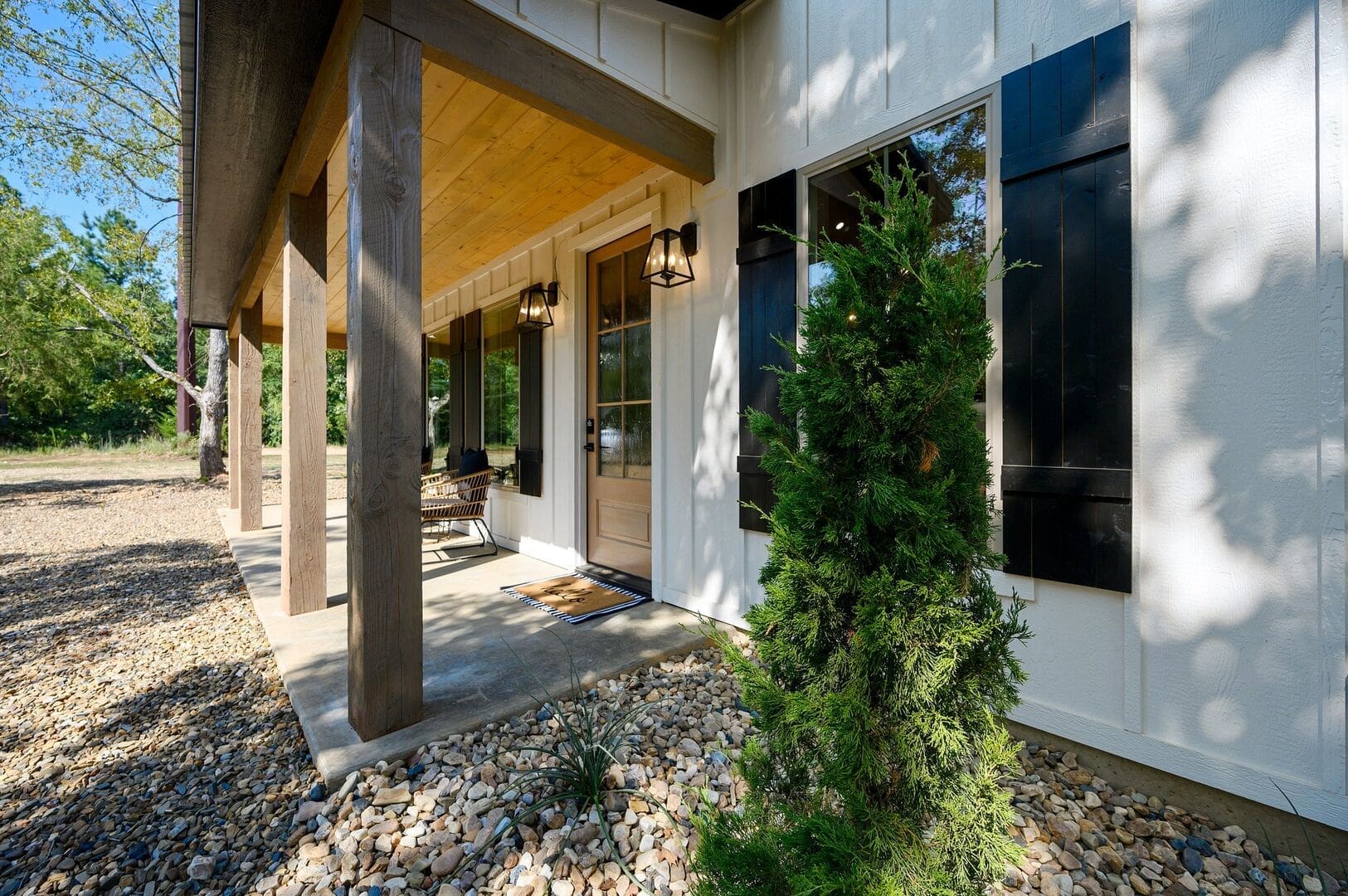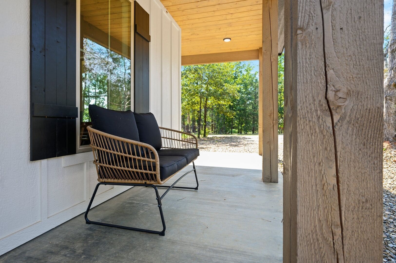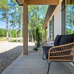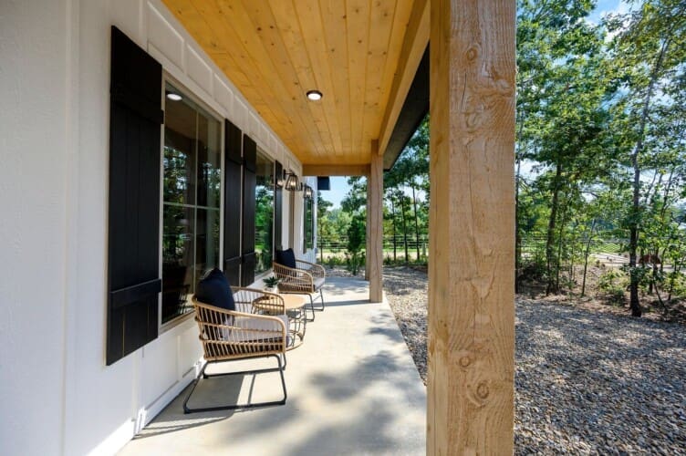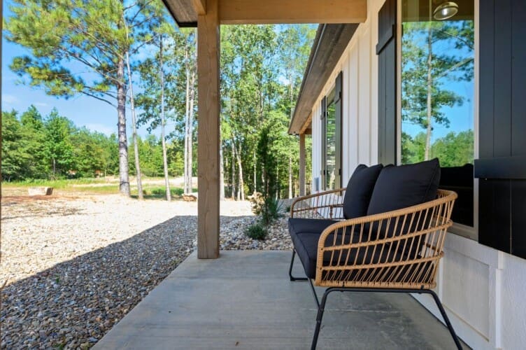 Outdoor Living takes center stage with a private oasis that includes patio furniture for two, a gas fireplace, a big-screen HDTV, a hot tub, and a fire pit with seating for two. Front porch patio furniture completes the scene, offering a perfect spot for shared moments.