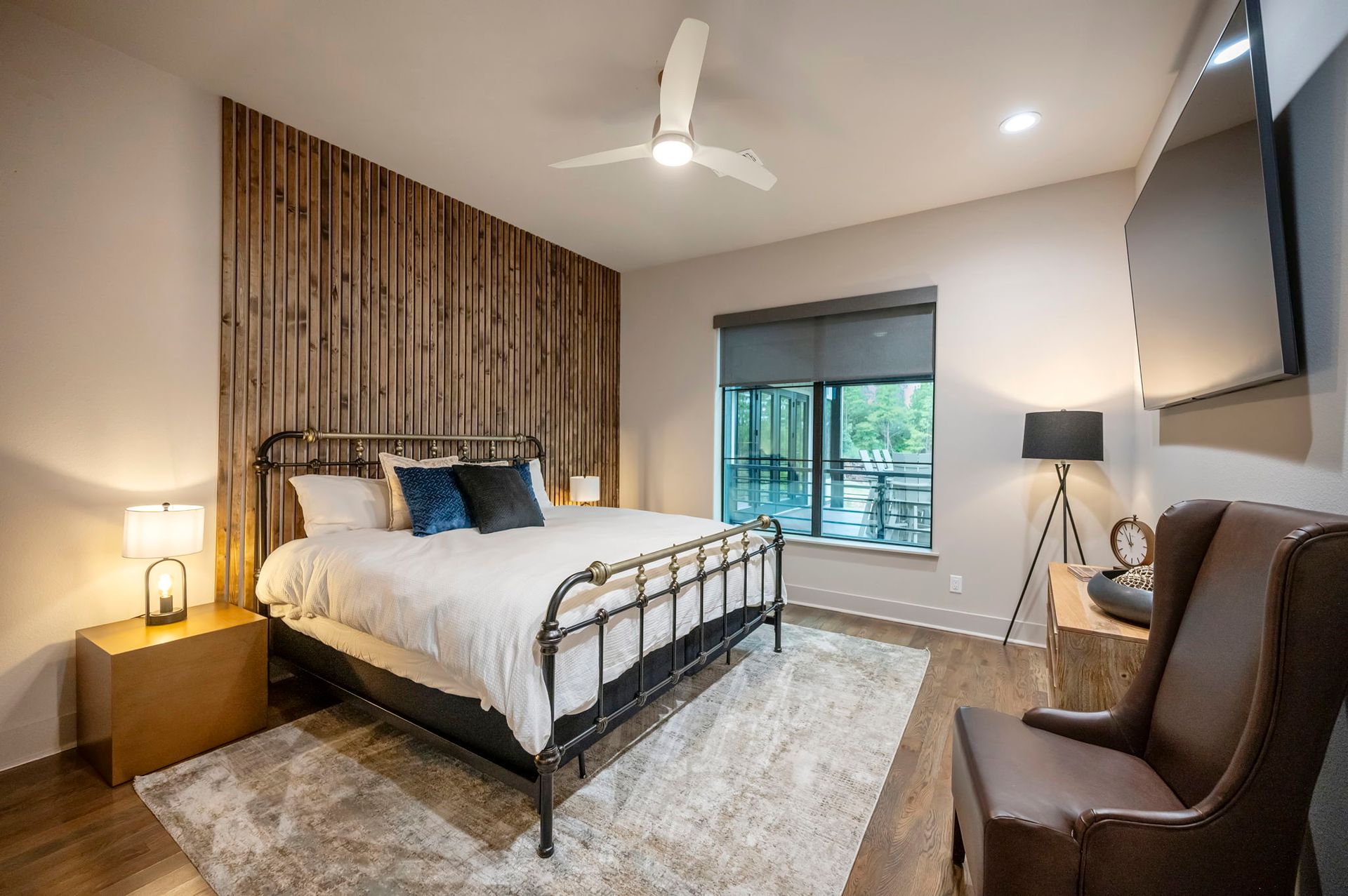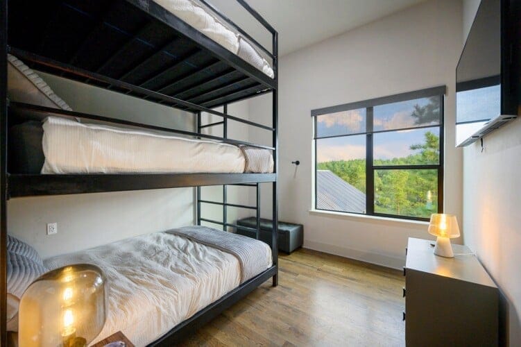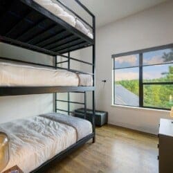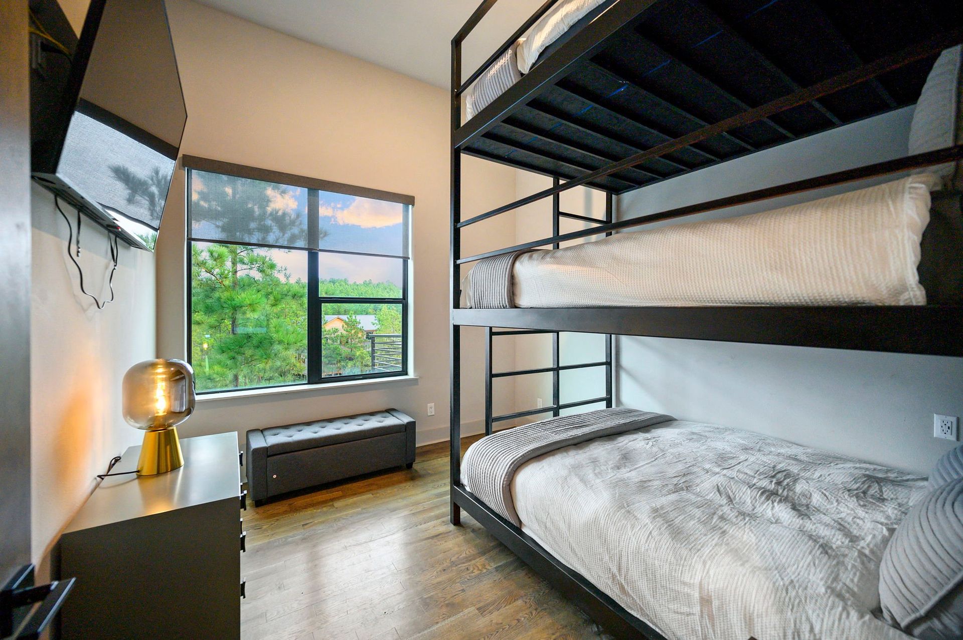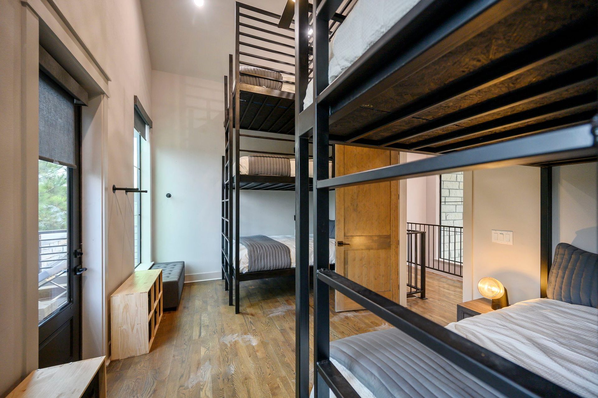 When it’s time to rest, Iron Bull has you covered with seven master suites spread across the home. Each king bedroom offers plenty of space, thoughtful touches, and private en-suite bathrooms featuring walk-in showers, double vanities, and, in some, large soaker tubs. There’s no fighting over who gets the “good” room—every guest enjoys real comfort and privacy. Upstairs, two additional queen bedrooms and three bunk rooms with custom-built queen-size bunks give the younger crew their own slice of the fun. The upstairs layout is spacious yet connected, with two full bathrooms, a loft-style hangout area, and even access to a private balcony with lounge seating.