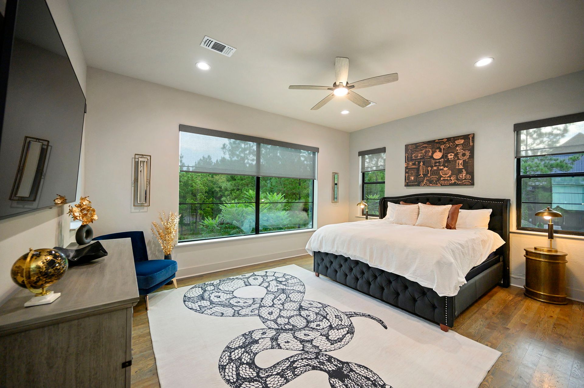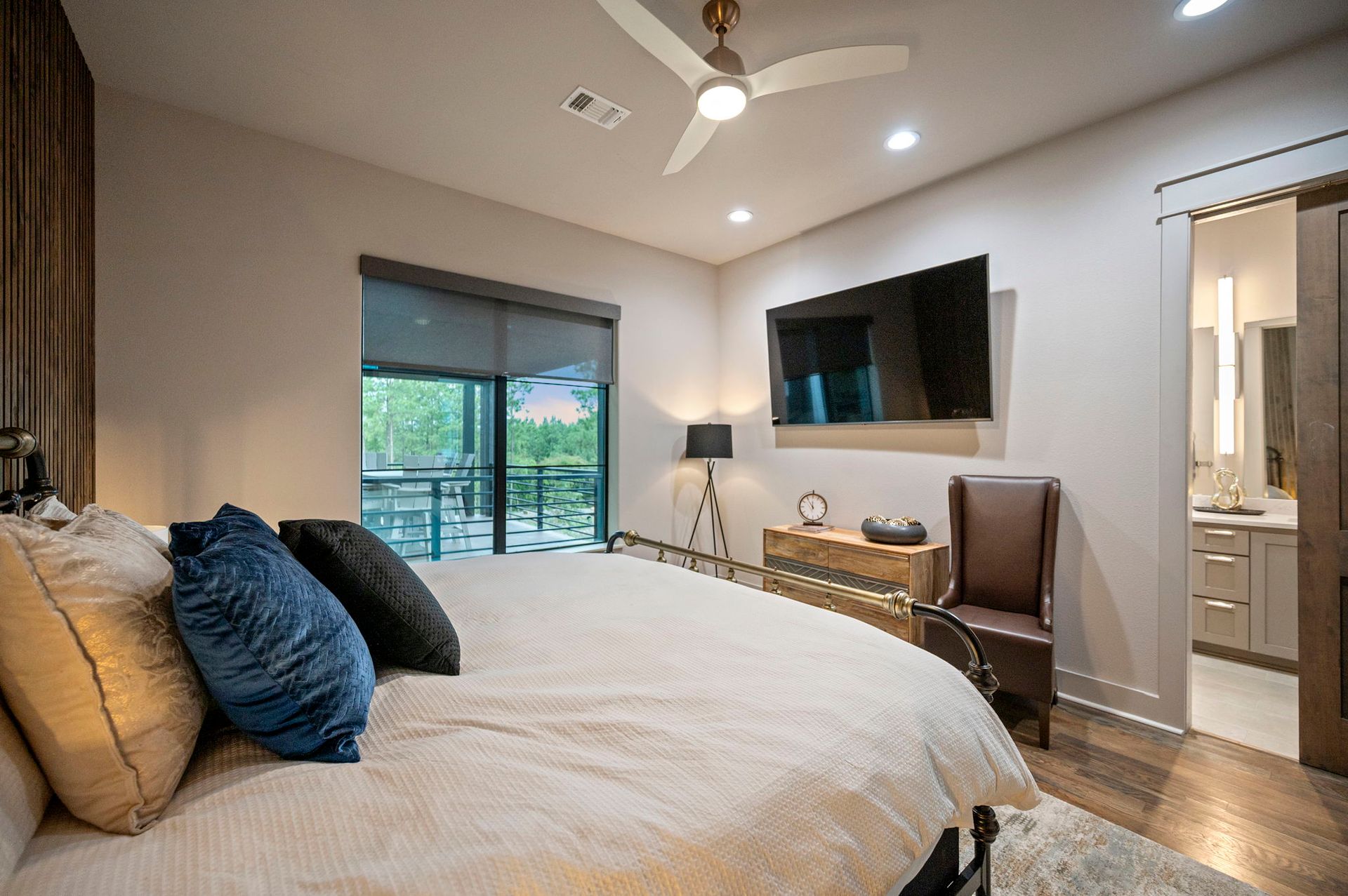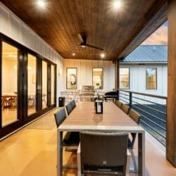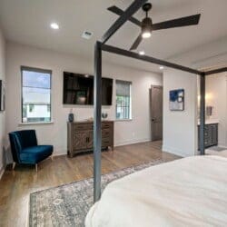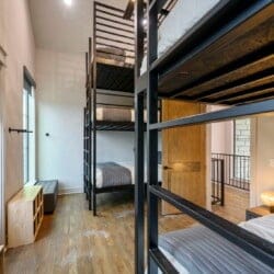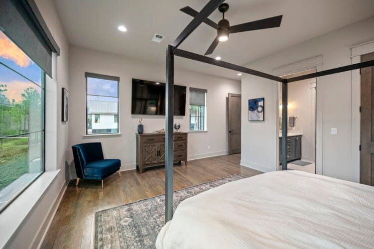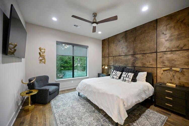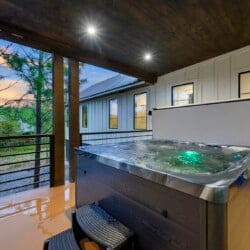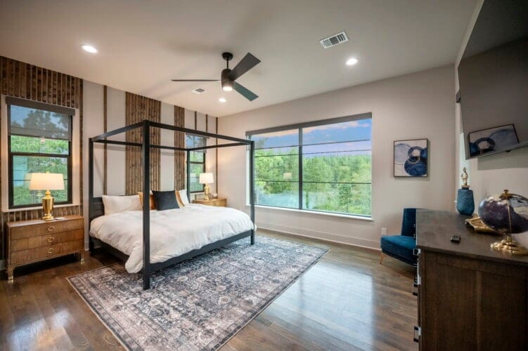 When it’s time to rest, Iron Bull has you covered with seven master suites spread across the home. Each king bedroom offers plenty of space, thoughtful touches, and private en-suite bathrooms featuring walk-in showers, double vanities, and, in some, large soaker tubs. There’s no fighting over who gets the “good” room—every guest enjoys real comfort and privacy. Upstairs, two additional queen bedrooms and three bunk rooms with custom-built queen-size bunks give the younger crew their own slice of the fun. The upstairs layout is spacious yet connected, with two full bathrooms, a loft-style hangout area, and even access to a private balcony with lounge seating.