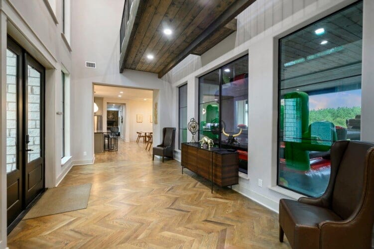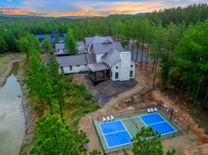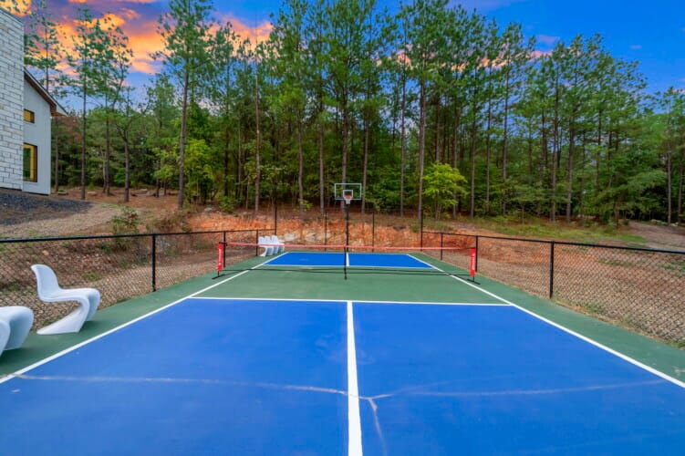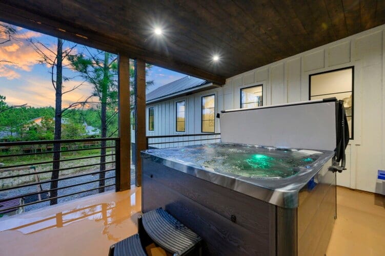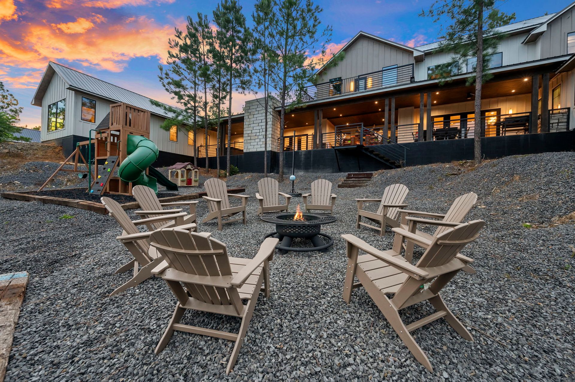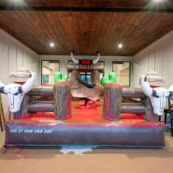 And then, of course, there’s the mechanical bull. Yes, an actual mechanical bull—ready to turn your vacation into something nobody will forget. Between the bull, the playset for kids, the horseshoes, the tetherball, the pond, the hot tub, and the firepit with surrounding chairs, every age group finds its version of fun here. There’s space to explore and space to relax, and it all feels like it was made just for you.