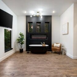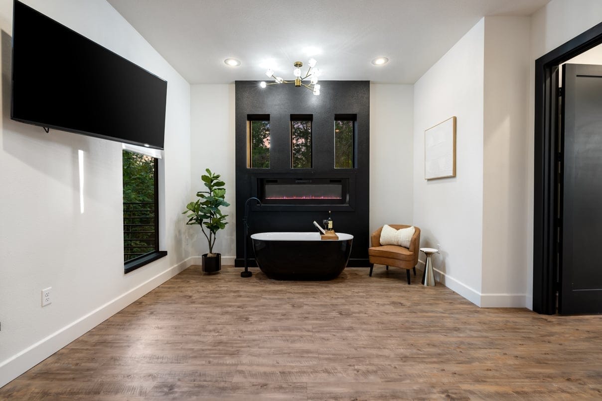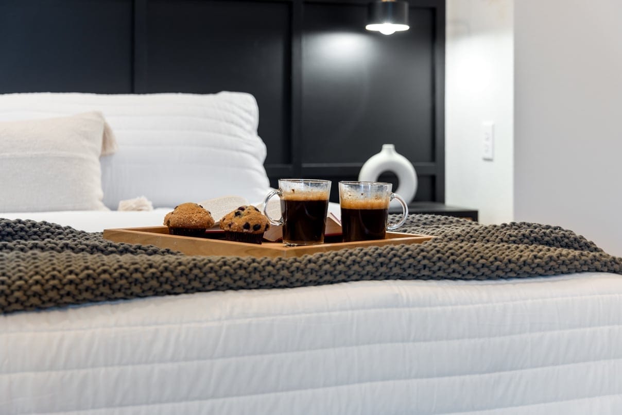 One of the standout features of Jade is the king bedroom. Jade doesn’t just offer a place to sleep—it pampers you. The room is spacious, quiet, and comfortable, with a large king-size bed that promises restful nights. Right beside it, there’s a soaking tub placed in front of a small fireplace. It’s perfect for those who want to enjoy a romantic soak while staying warm and cozy. Jade also features a private bathroom attached to the bedroom, complete with a full walk-in shower and a double vanity. You can start your mornings feeling refreshed with soft towels and fresh toiletries ready for use.
