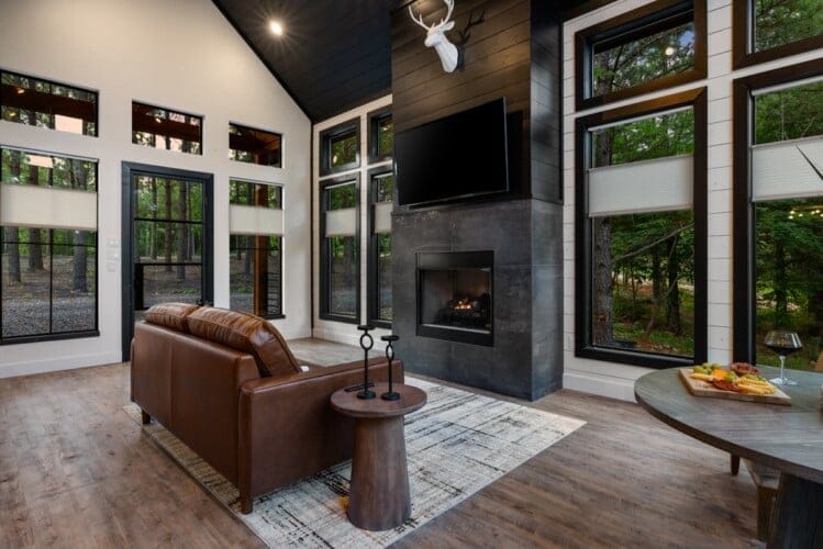 Jade invites you in with its clean and open layout. The fireplace warms your evenings, and the large-screen HDTV entertains while you relax on the leather couch. However, you might spend more time gazing out the large windows or relaxing in the outdoor hot tub under the stars. Jade is filled with small details that make a big difference.