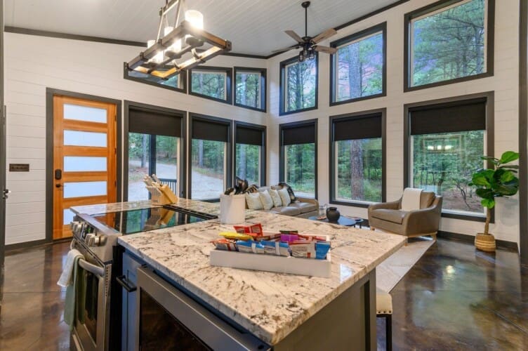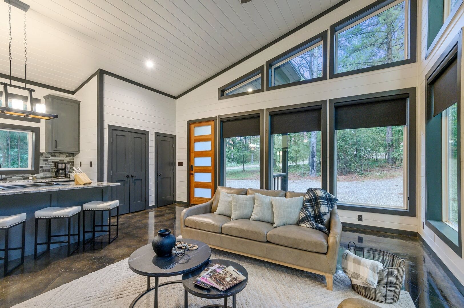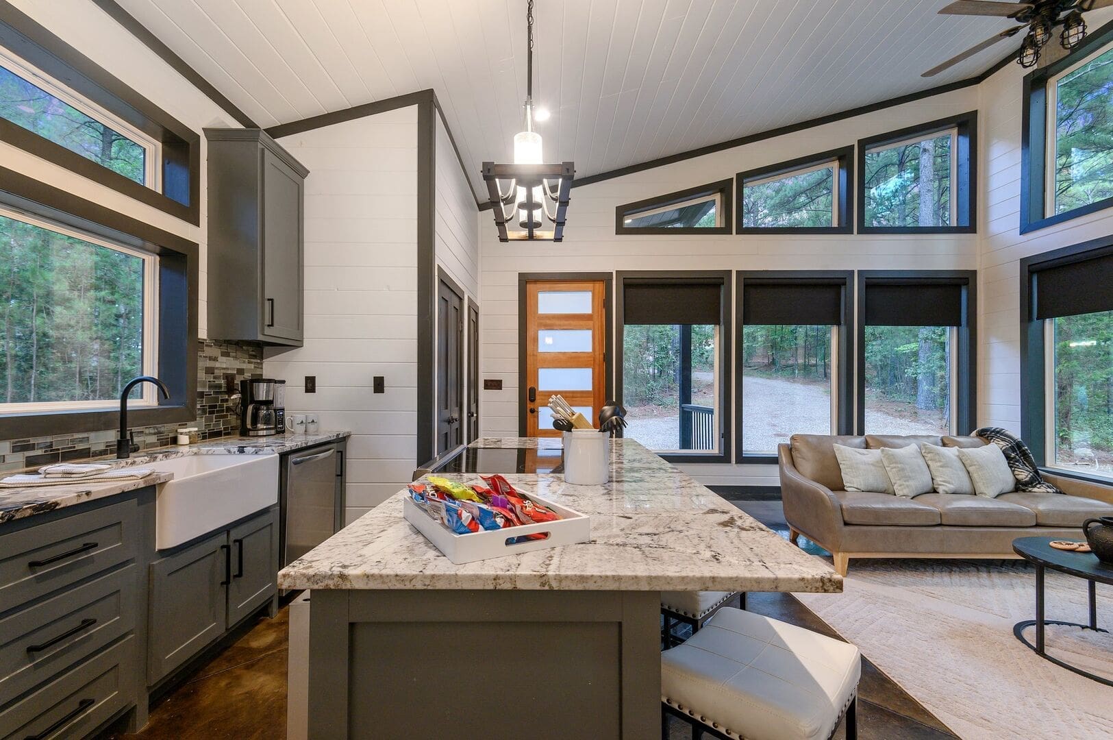 The Kitchen and Dining area is a haven for culinary enthusiasts, fully stocked with everything you might need for your stay. From a toaster and blender to a Ninja coffee maker (complete with a starter pack of coffee), the kitchen ensures a seamless experience. Four bar stools on the island provide a charming spot for intimate meals.