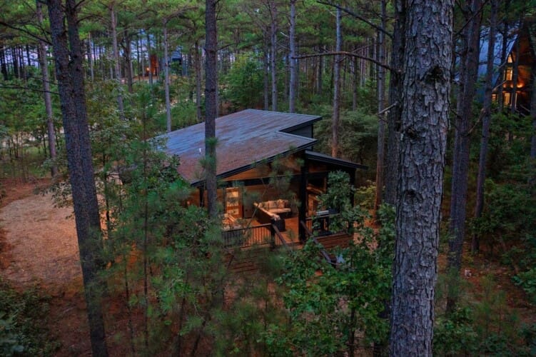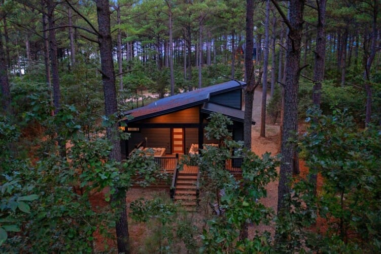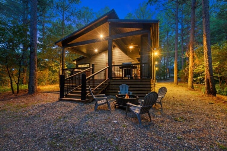 Indulge in the serenity of Lilly’s Luxury Retreat, an enchanting one-bedroom cabin in the heart of Broken Bow, Oklahoma, beckoning couples to embark on a romantic getaway.
