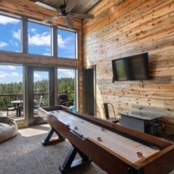 More Than A View is a luxury cabin tucked away in a quiet area near Broken Bow, Oklahoma. This cabin offers peaceful surroundings with panoramic views of Sunrise Ridge and the Ouachita National Forest. It’s more than just a place to stay—it’s a place where unforgettable memories are made. With enough room to sleep up to fifteen guests, it’s ideal for large groups or multiple families looking to enjoy time together in a private, comfortable setting.