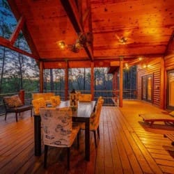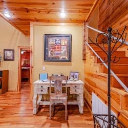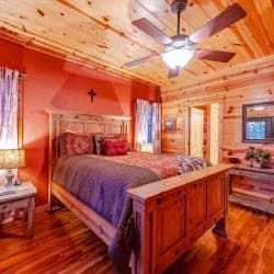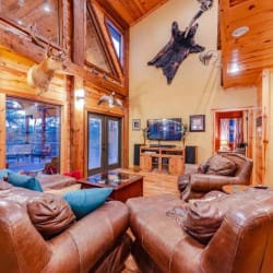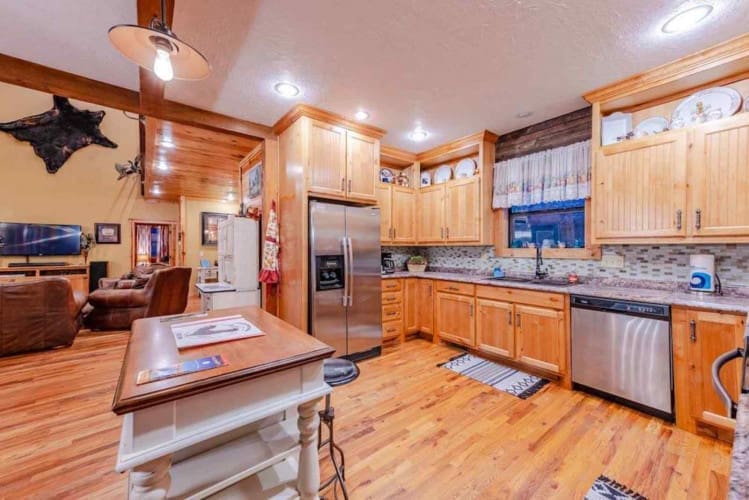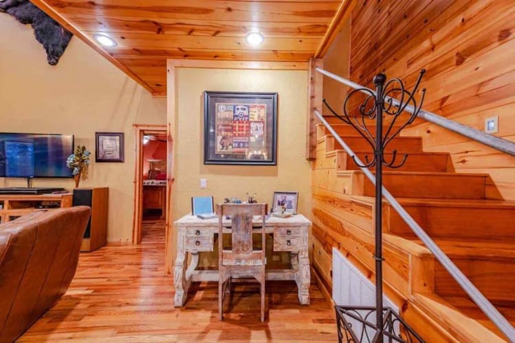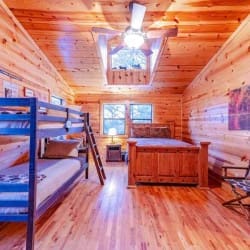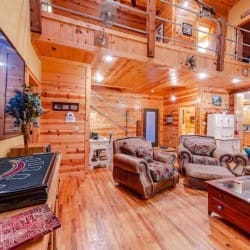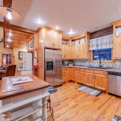 The cabin comfortably sleeps eight guests, making it ideal for larger families or groups. The spacious layout includes a loft area, providing additional sleeping space or a cozy spot for relaxation. The bedrooms are tastefully decorated, and the beds are comfortable, ensuring you get a good night’s sleep.