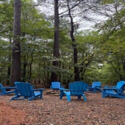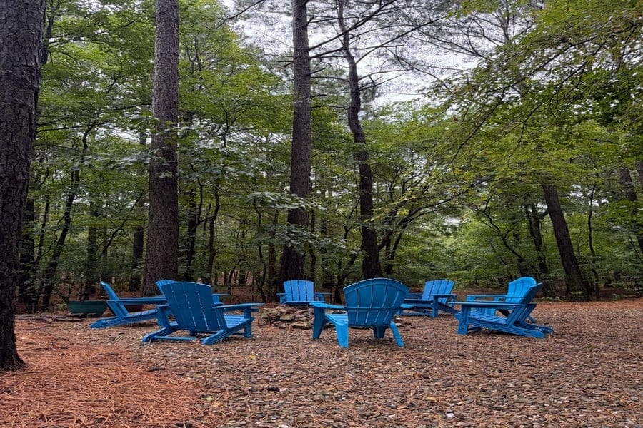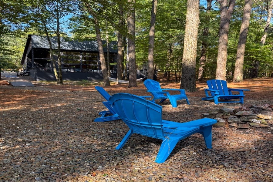 A short walk from the back deck leads to an inviting outdoor fire pit with chairs for your entire group to gather around and enjoy. Additionally, there is a Ninja Warrior obstacle course for kids to enjoy.