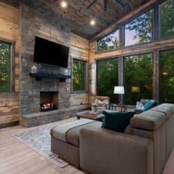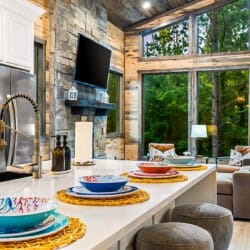 Nature’s Nest features two king suites and a queen sleeper sofa, comfortably accommodating six guests. With its farmhouse design, the cabin creates a warm and inviting atmosphere. Enjoy modern amenities like smart TVs and fast Wi-Fi, ensuring entertainment and connectivity during your stay. The fully equipped kitchen with a coffee bar makes meal preparation a breeze. We provide coffee, sugar, and creamer for your convenience. Spa-like bathroom amenities, including soap, shampoo, and conditioner, are provided to enhance your stay.