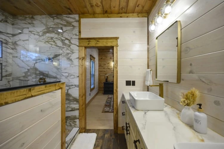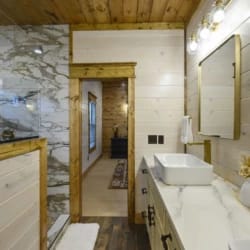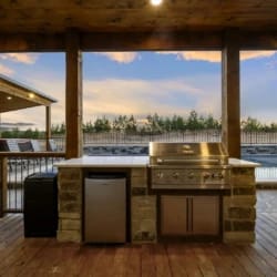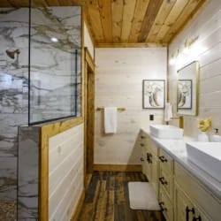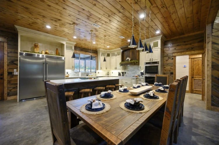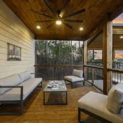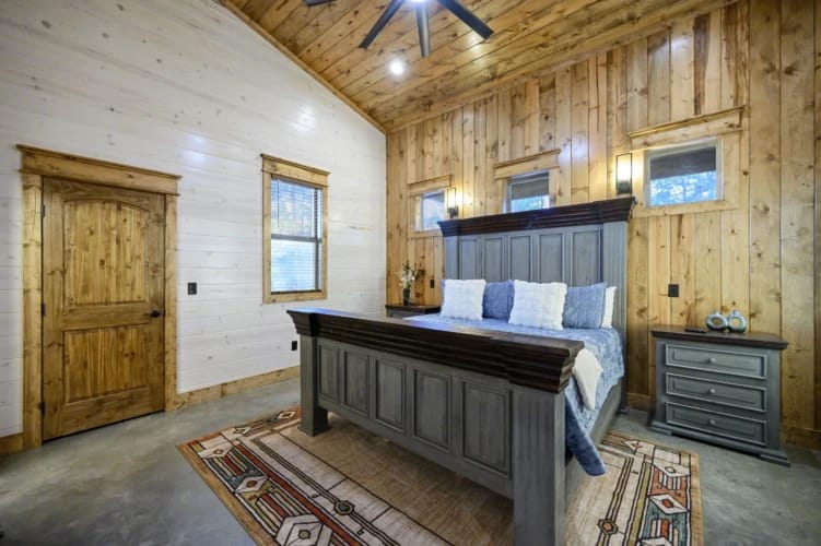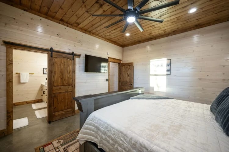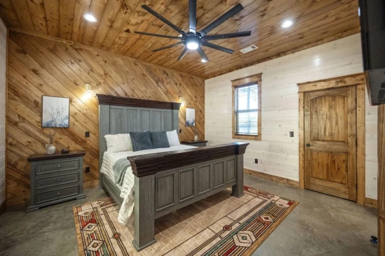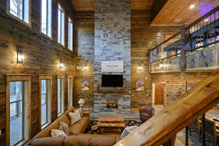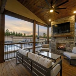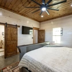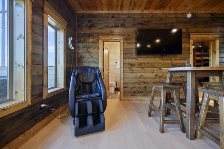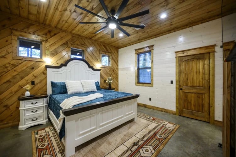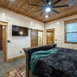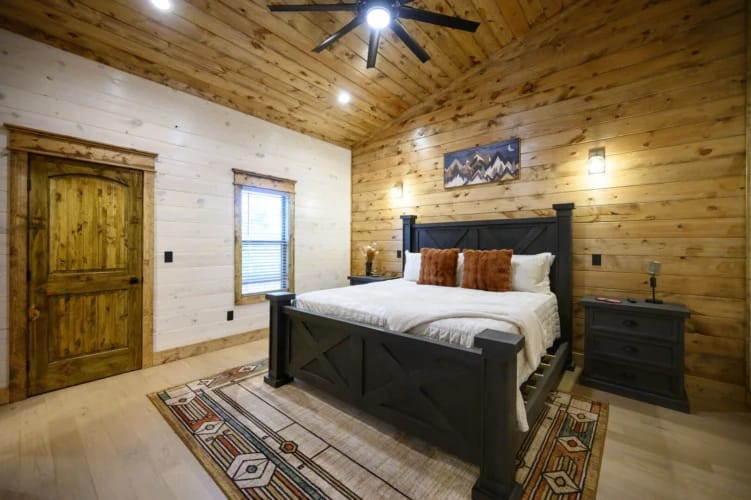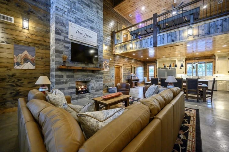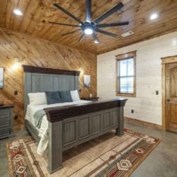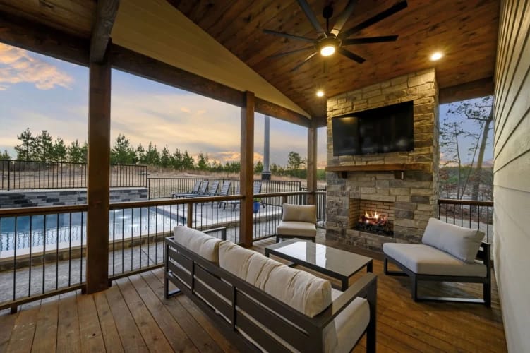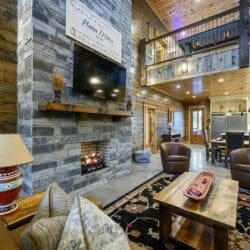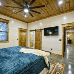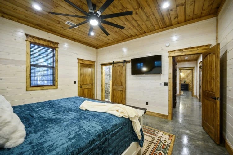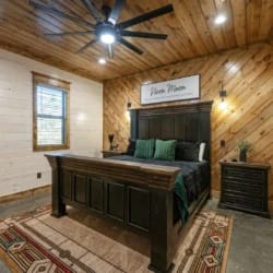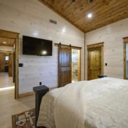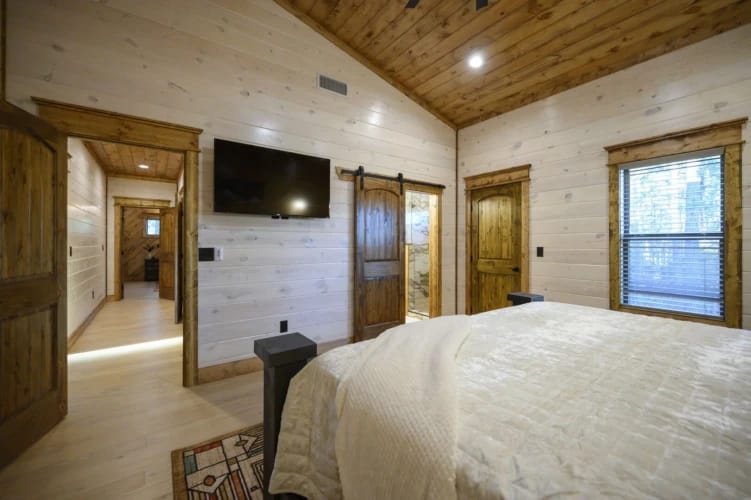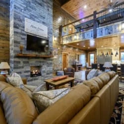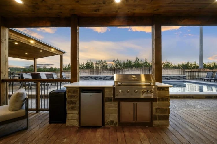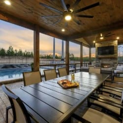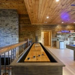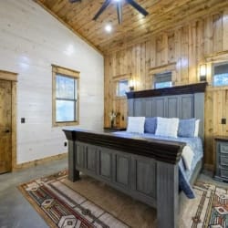 6 King Master Suites • 1 Bunk Room • Half Bath • Sleeps 42 • Heated Private Pool • Hot Tub • Game Loft • Expansive Balcony • Chef-Inspired Kitchen • Direct ATV Trail Access • EV Plug-In • Pool Table • Shuffleboard • Massage Chair • Arcade table