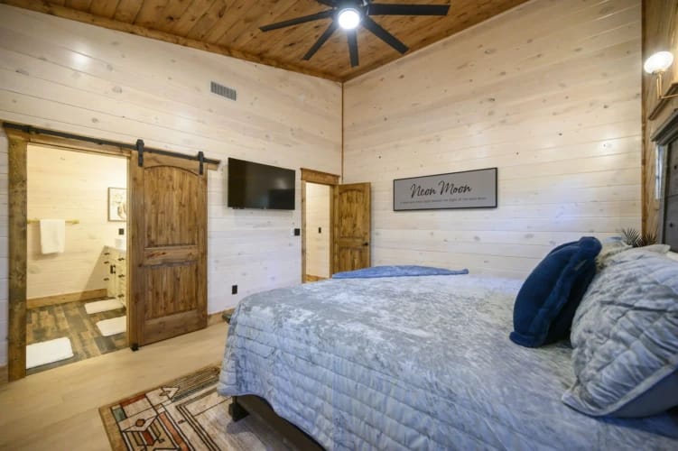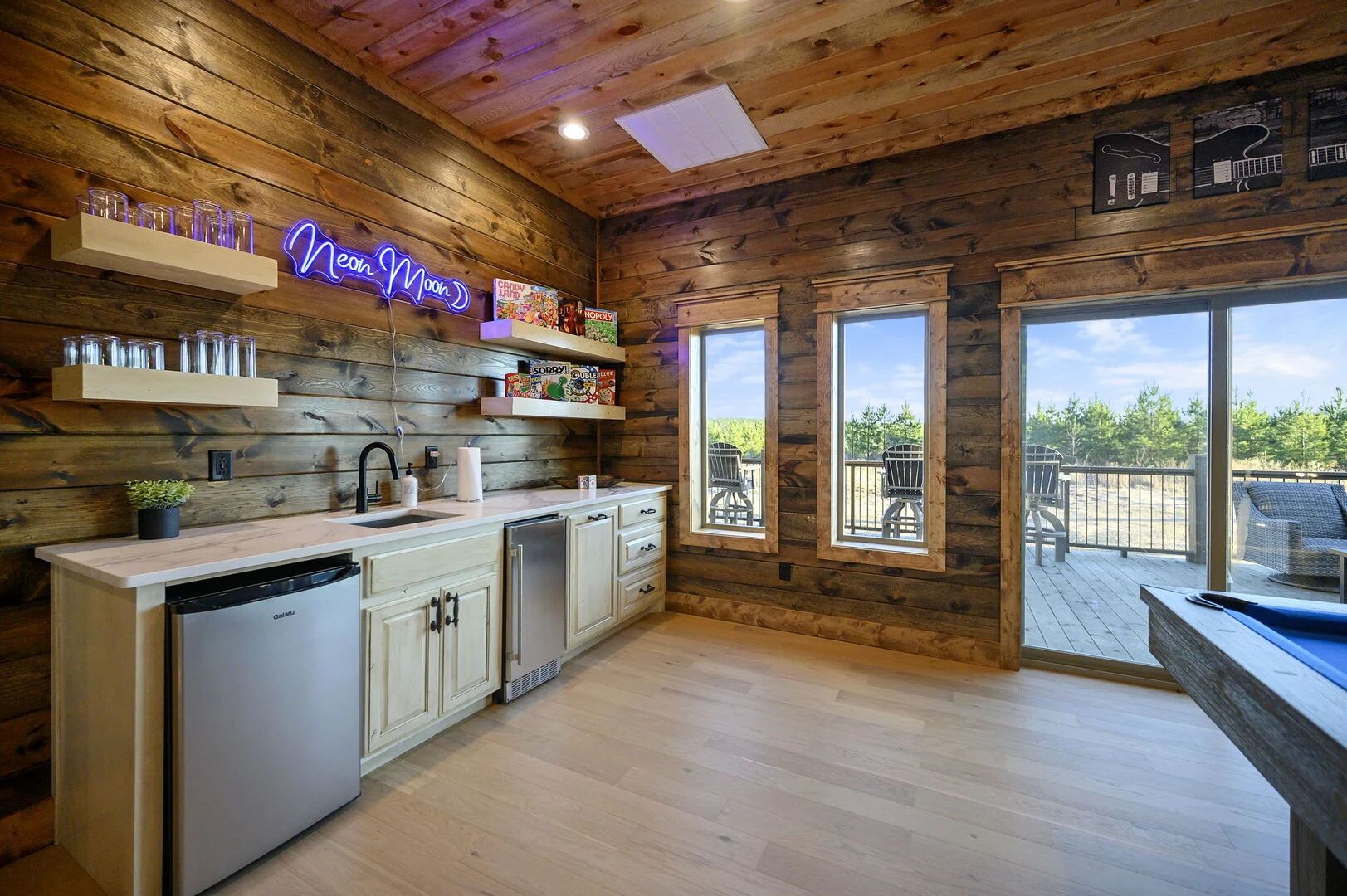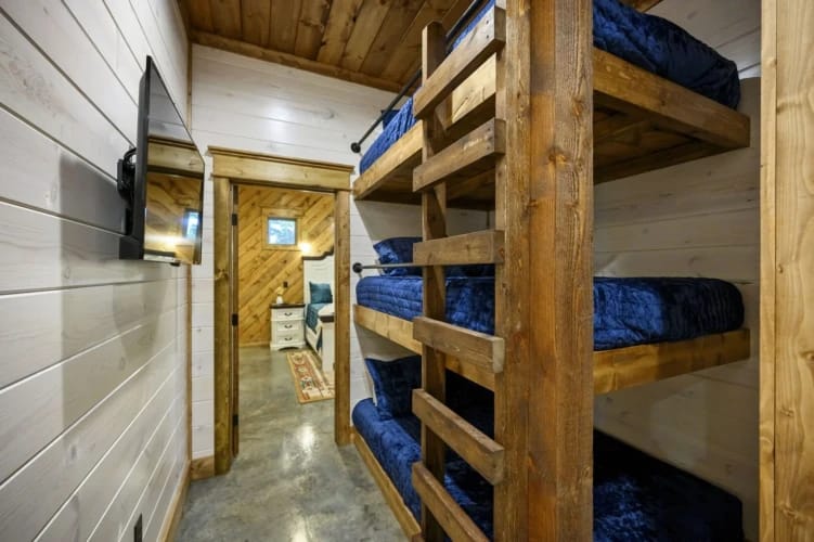 Welcome to Neon Moon Lodge, a striking, newly constructed luxury retreat designed for large families, reunions, and unforgettable group getaways. Thoughtfully laid out with mirrored king master suites, oversized bunk spaces, expansive gathering areas, and elevated entertainment zones, this cabin blends upscale comfort with fun-forward design — all while offering direct access to ATV trails for guests eager to explore Broken Bow’s rugged beauty. Just steps off the main patio, you’ll find the private heated pool, perfectly positioned for effortless indoor-outdoor living and endless days of relaxation and fun.