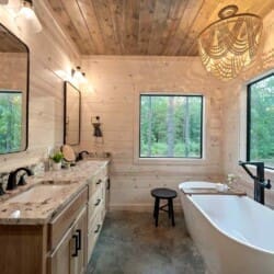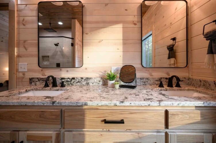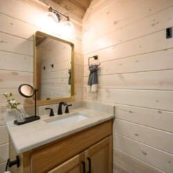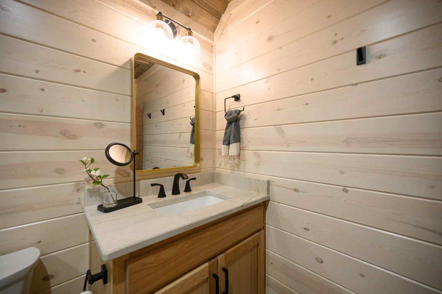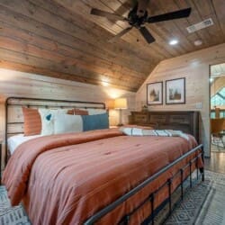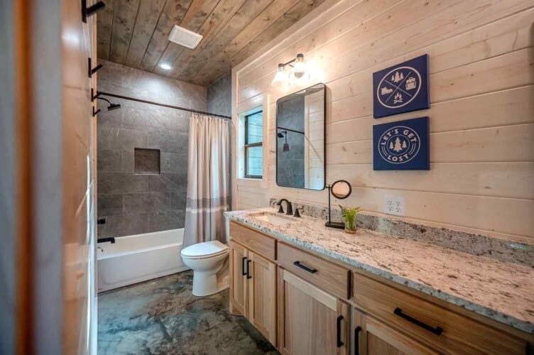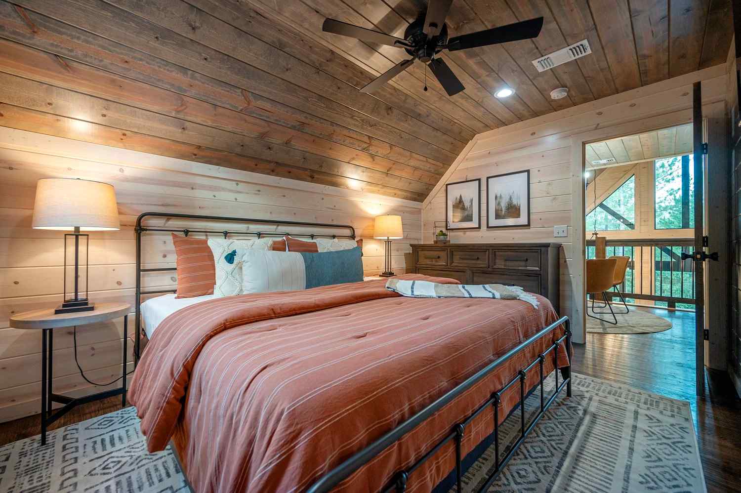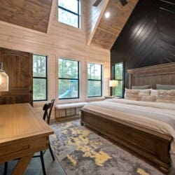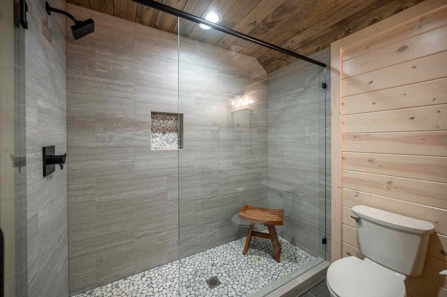 Guests can look forward to two king suites with individual bathrooms, special features like vanities and soaking tubs, and walk-in showers. Each bedroom also features 55-inch intelligent TVs so you can catch your favorite shows in the comfort of your own space. Cozy up in the upstairs loft with board games and puzzles, or get the family together for a game of poker. The downstairs bunk room offers a game console and foosball for guests looking for thrills and excitement. Outdoor games are provided, so you can get competitive with a rousing game of corn-hole or horseshoes or go a bit more tactical with a Bocce-ball court.