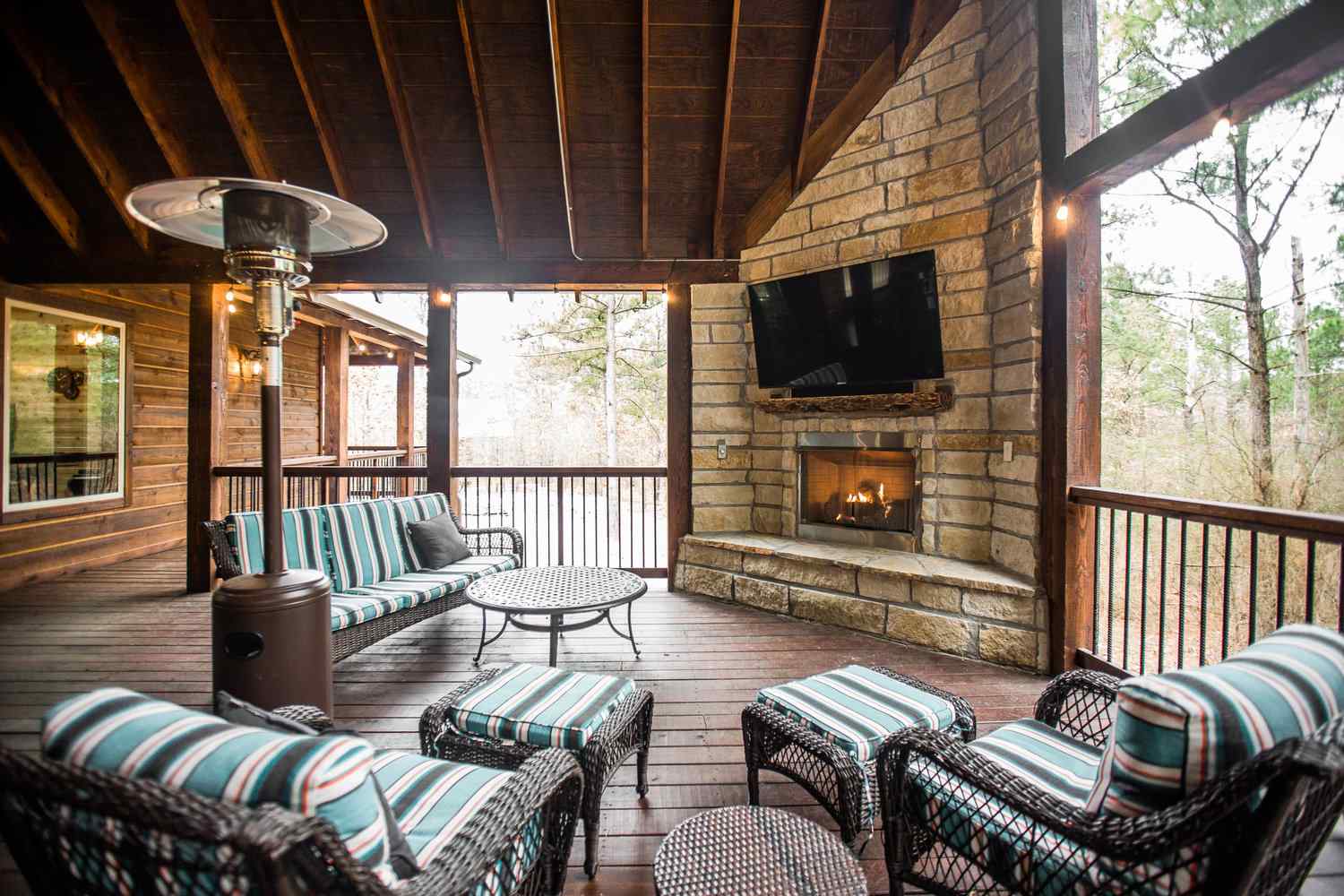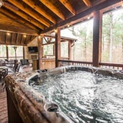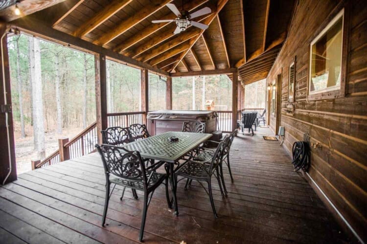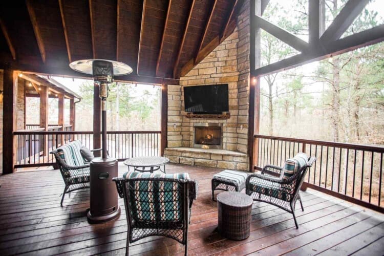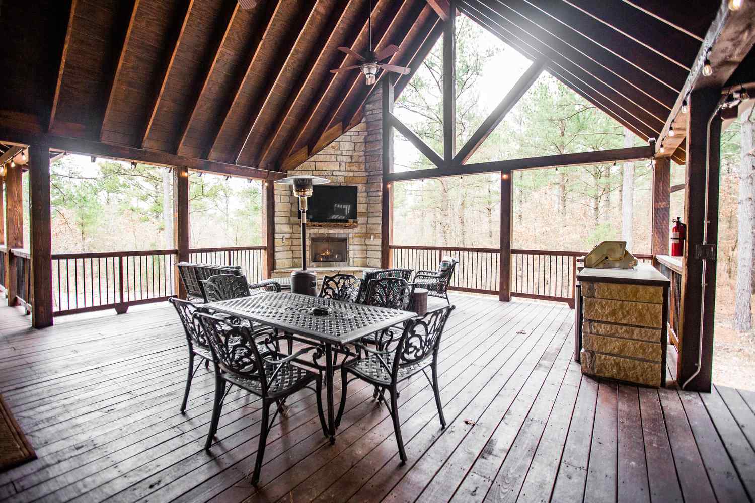 From the fully equipped kitchen, which boasts a large island bar, to the covered outdoor dining area, you’ll find everything you need for a relaxing stay. Get a relaxing soak in the hot tub on the covered deck or rustle up something delicious in the outdoor kitchen with a large, built-in gas grill, refrigerator, and plenty of counter space for prepping. End the day with the fire ring in the backyard, where plenty of additional seating areas create a cozy atmosphere as you share stories and make memories together in this Broken Bow cabin rental.