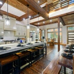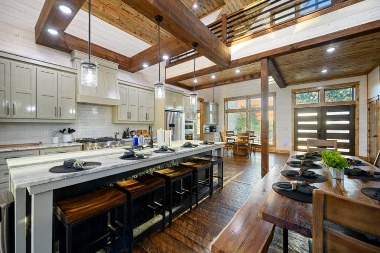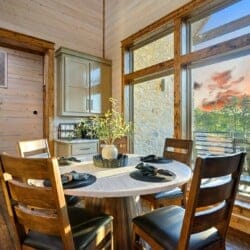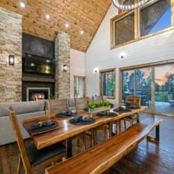At the heart of Panorama Peak is the kitchen, built to bring people together. With two refrigerators, double ovens, and a duo coffee maker that covers both drip and K-Cup styles, it’s equipped for big breakfasts, holiday dinners, and everything in between. The open layout connects to a dining area that comfortably accommodates the entire group, featuring two large tables and additional seating at the island, ensuring everyone has a seat when the food arrives. It’s a space that makes cooking and eating together feel effortless and fun.