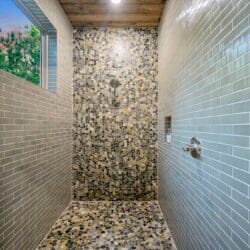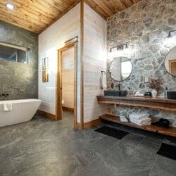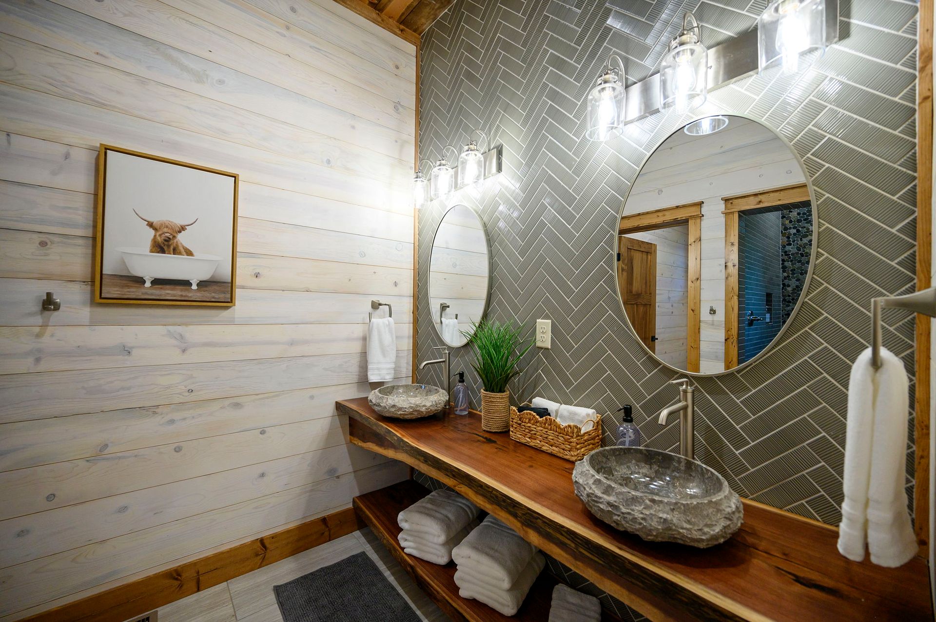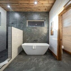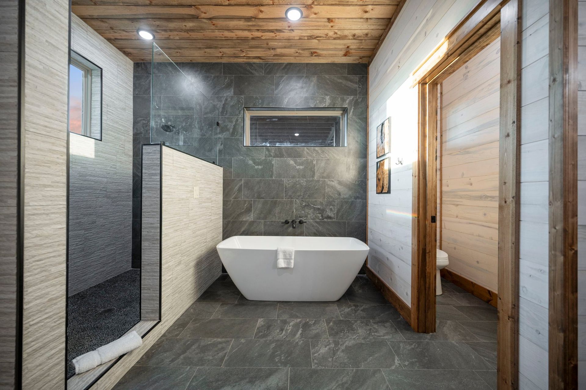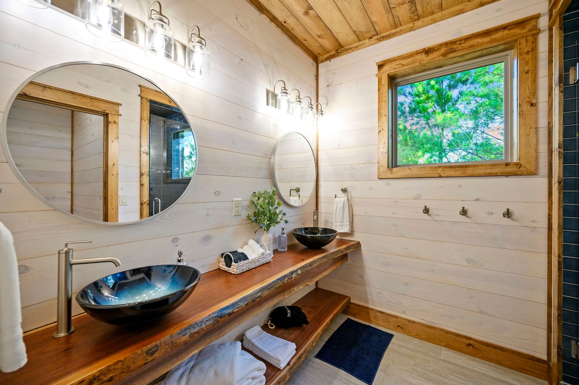Each of the eight bedrooms at Panorama Peak has been designed as a private retreat. The five king suites feature plush bedding, smart TVs, and ensuite bathrooms that feel more like spa sanctuaries, complete with double vanities, walk-in showers, and even soaking tubs in select rooms. The bunk rooms, ideal for kids or teens, provide ample sleeping space and feature arcade games that keep the fun going late into the night. On the lower level, the Murphy suite offers both comfort and versatility with its queen-size Murphy bed, TV, and additional arcade classics, such as NBA Jam and Golden Tee. Every bedroom gives guests the same sense of luxury and relaxation, so no one ever feels like they drew the short straw.