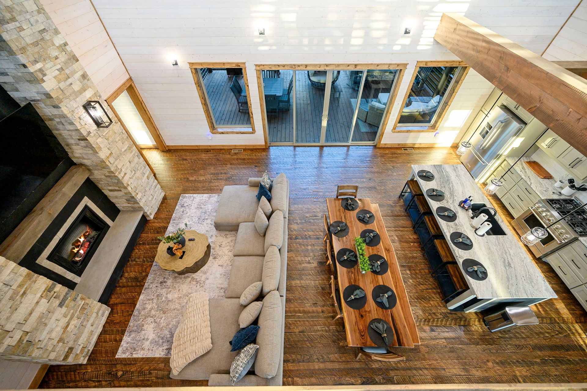 Welcome to Panorama Peak, a breathtaking 8-bedroom, 8.5-bathroom mountain lodge that combines high-end comfort with the kind of charm and warmth that makes you feel instantly at home. Set against the stunning backdrop of View All Cabins, this cabin isn’t just a getaway—it’s a destination in itself. Every corner of Panorama Peak is crafted for togetherness, whether you’re reuniting with family, celebrating milestones with friends, or hosting a retreat that calls for both space and sophistication. From the moment you walk in, panoramic windows frame mountain views that seem to stretch on forever, and every detail of the design whispers luxury, relaxation, and fun.