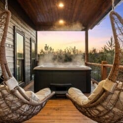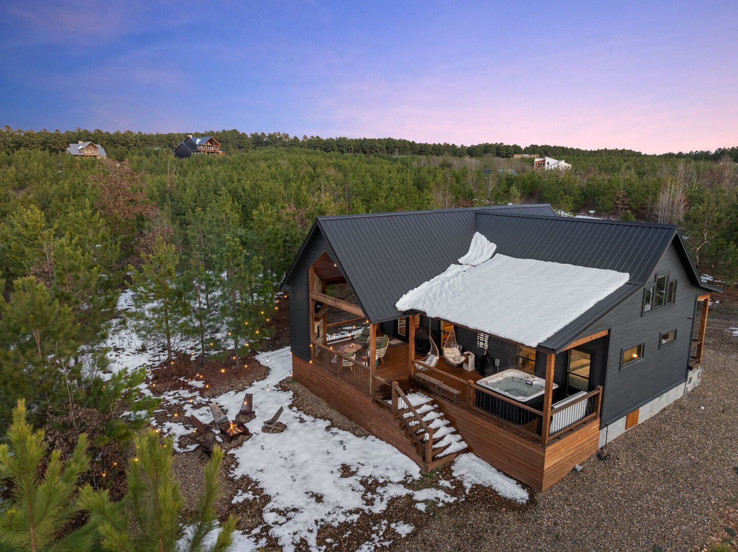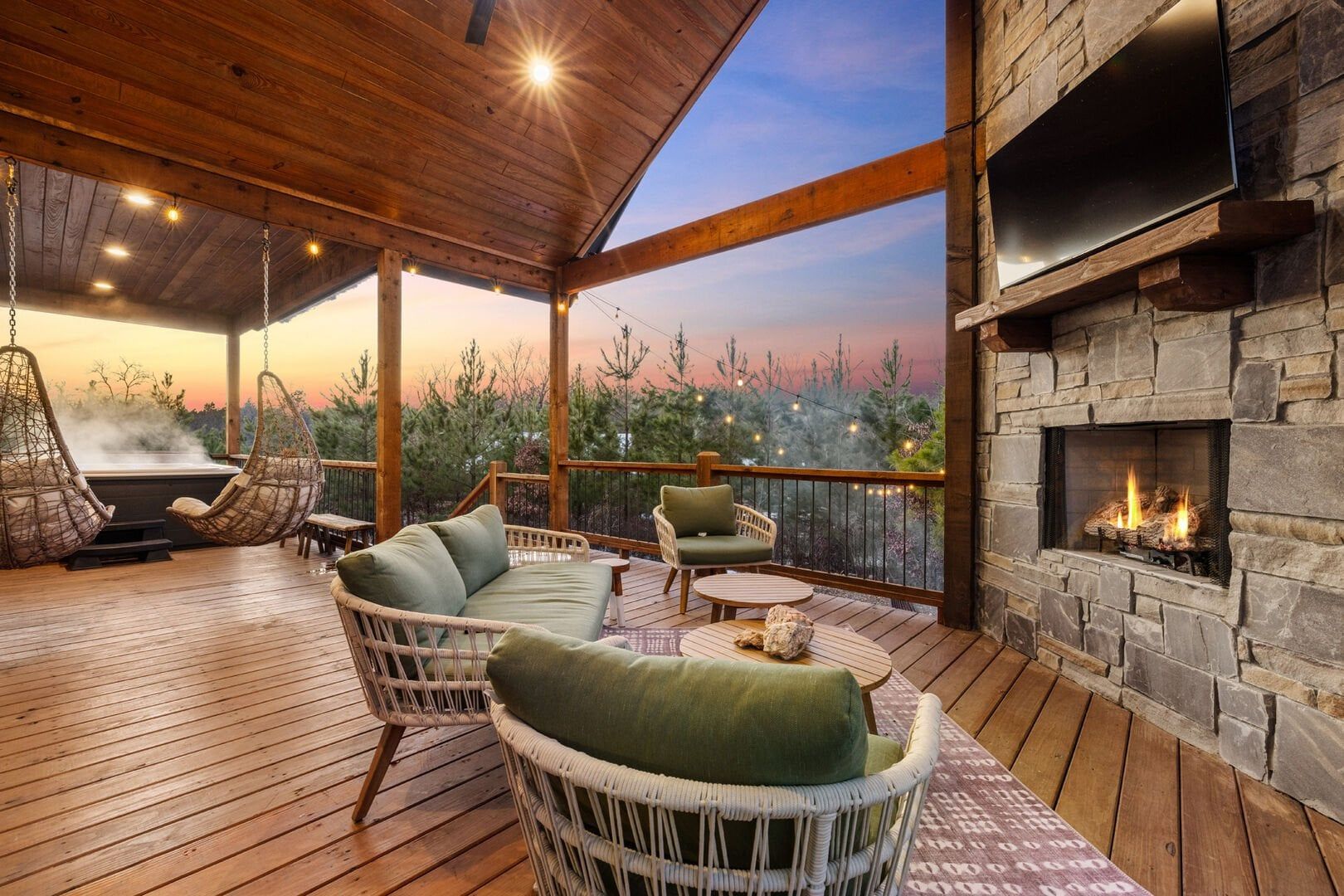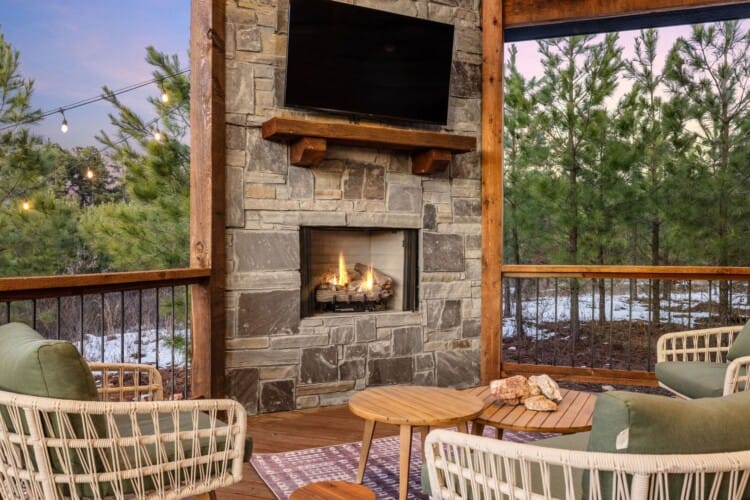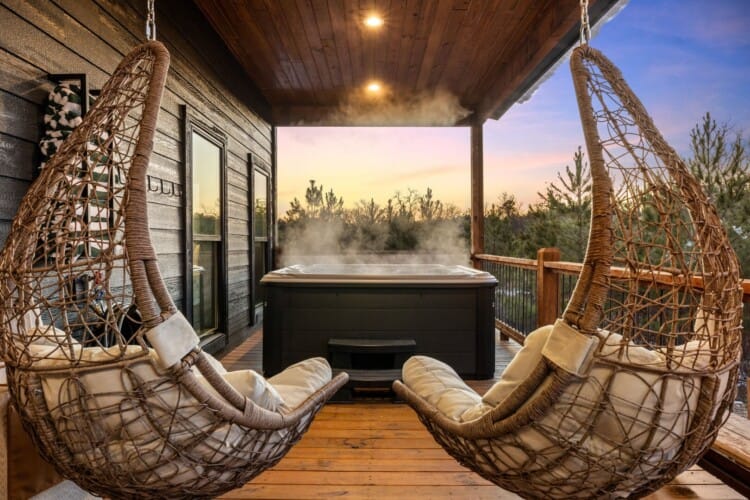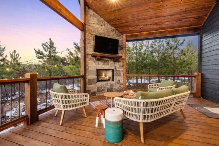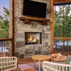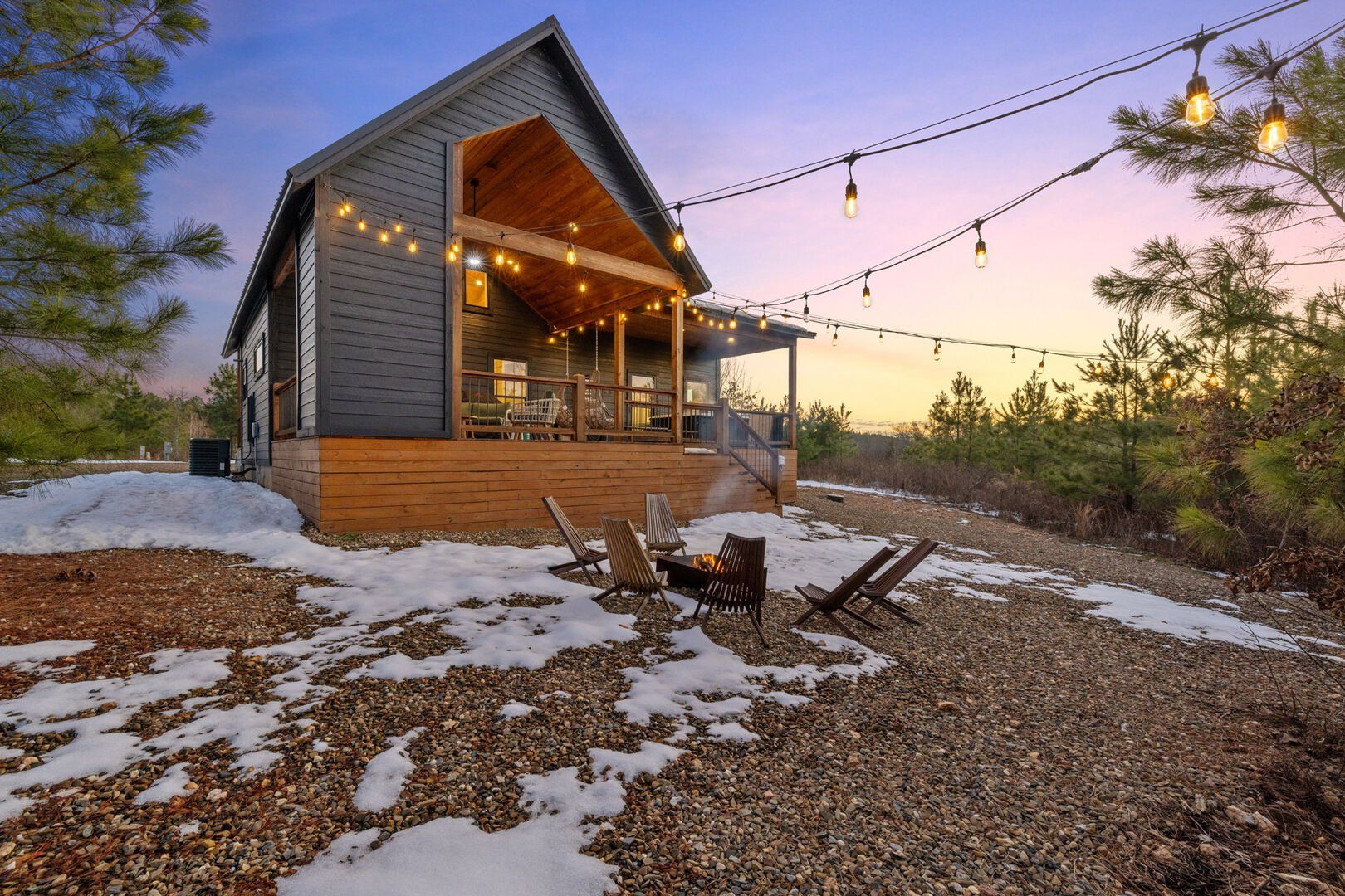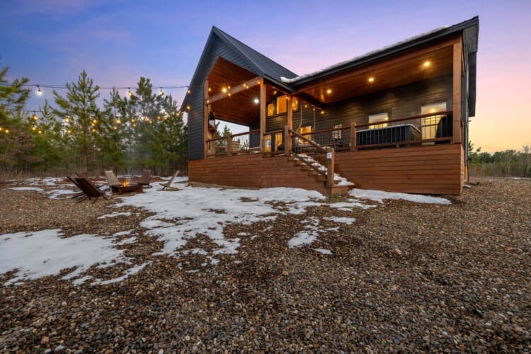 Pine and Bow Lodge shines when you step outside. The back deck includes a hot tub for peaceful evening soaks and a seating area with stylish swinging chairs. Chairs surround the fire pit in the yard, making them perfect for roasting marshmallows under the stars. A gas grill is ready for outdoor cooking, and the private setting lets you enjoy nature without distractions. Whether you’re sipping coffee at sunrise or sharing stories by the fire, Pine and Bow Lodge offers the kind of outdoor moments you’ll never forget.
