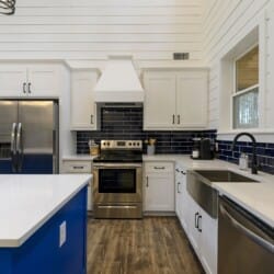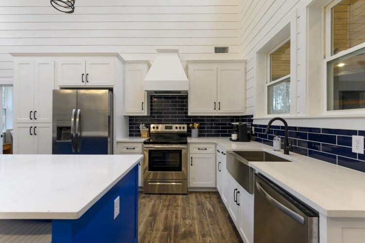 The kitchen at Plenty of Shade offers everything needed for easy meals, from full family dinners to simple snacks. A Keurig coffee machine makes mornings easy, and the large fridge, stove, and dishwasher help simplify cleanup. The indoor dining table provides ample space for the group, while the outdoor dining setup allows guests to enjoy meals surrounded by fresh air and natural beauty.
