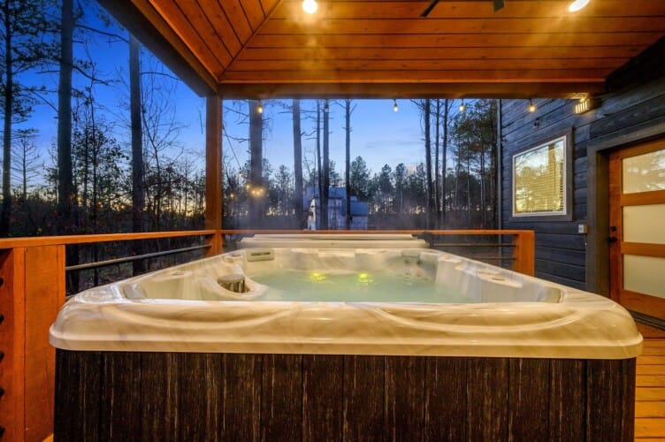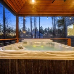 Modern Cabin Getaway with Hot Tub, Outdoor Games, Fire Pit, and Bunk Room