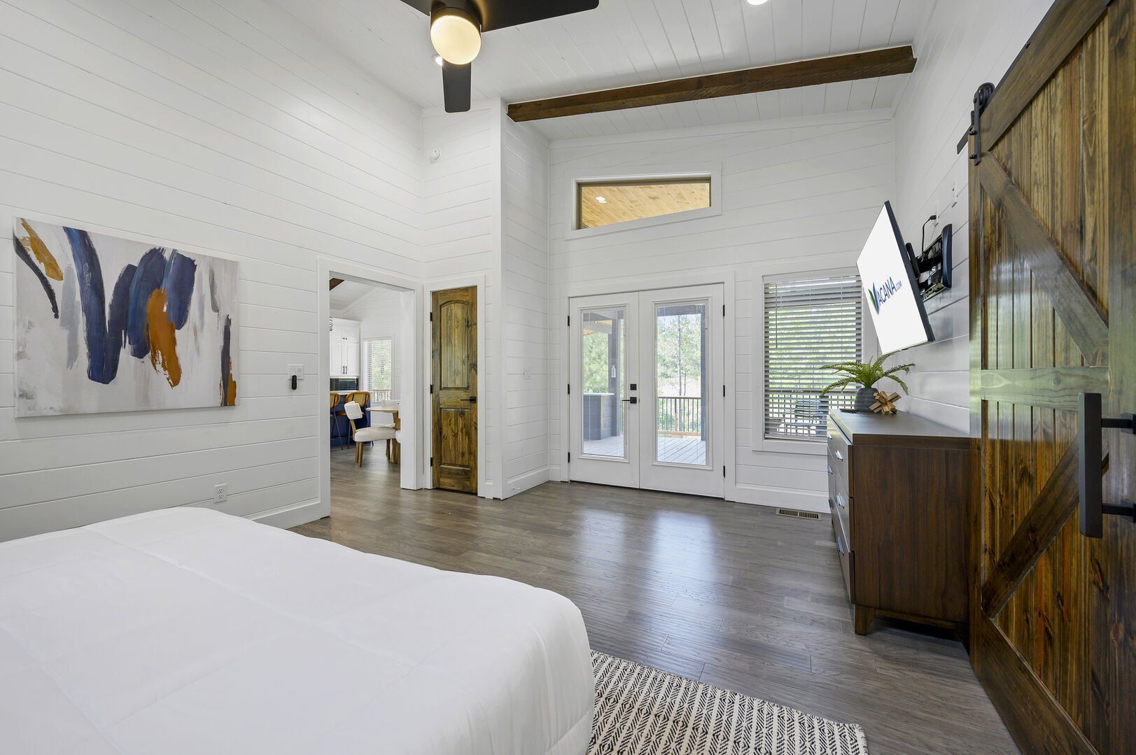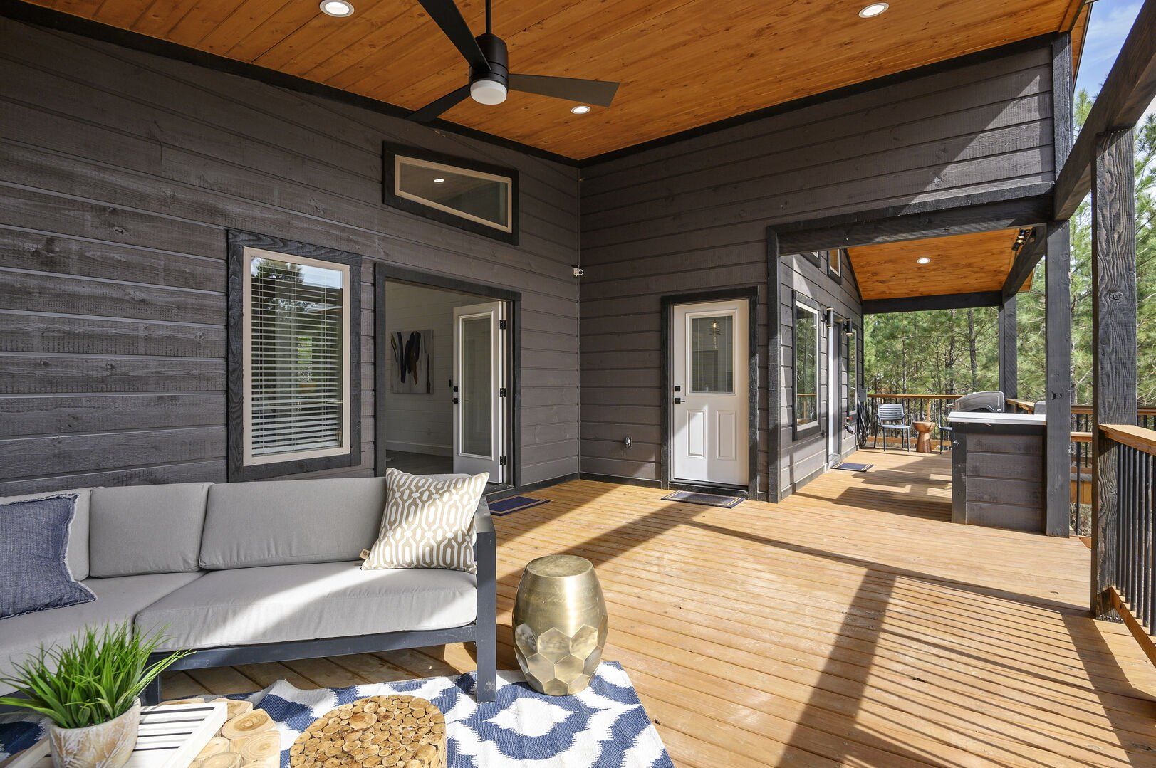 Reflect also features a fully equipped kitchen with everything you need to cook your favorite meals. The sleek countertops, deep sink, and top-quality appliances make meal prep easy and enjoyable. From morning coffee to late-night snacks, you can gather around the dining table or step outside to eat while taking in the views. The kitchen opens up to the deck, making it convenient to enjoy food outdoors or grill something fresh while enjoying the breeze.