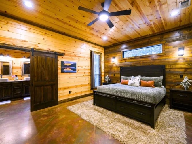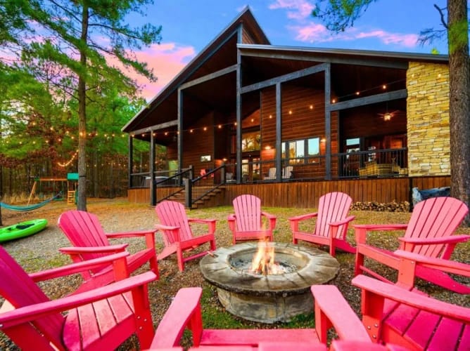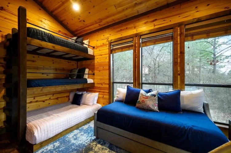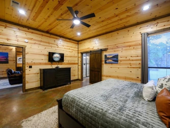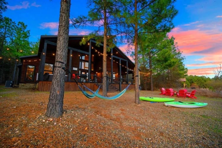 What makes The Retreat at Water’s Edge stand out among other Broken Bow cabins is its unbeatable location right on the water, paired with all the comforts of a modern home. Whether you’re kayaking at dawn, soaking in the hot tub after a day of hiking, or simply relaxing by the fire pit as the pond reflects the night sky, this cabin delivers an unforgettable experience for guests of all ages.