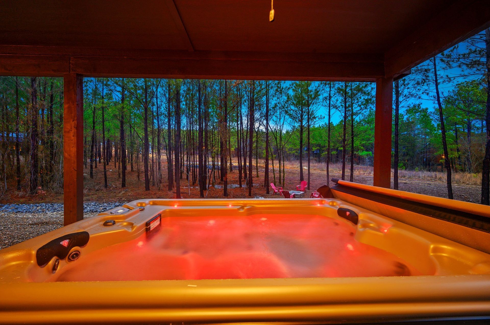The Ruby Red cabin’s location is just a short drive to Broken Bow Lake, Beavers Bend State Park, popular hiking trails, restaurants, breweries, wineries, and downtown Hochatown. You’ll have easy access to activities like boating, hiking, fly-fishing, kayaking, zip-lining, ATV trails, horseback riding, Cedar Creek Golf Course, mini-golf, helicopter rides, mining for gold, train rides, go-carts, and a great petting zoo.