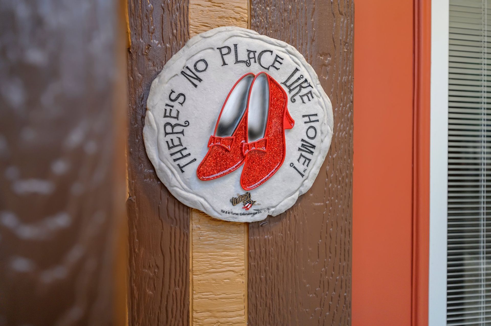 Welcome to the Ruby Red cabin, a unique retreat inspired by the enchanting world of the Wizard of Oz. This cabin, one of the four Wizard of Oz-themed cabins in Emerald City in Broken Bow, is a delightful choice for a family of four or two couples, with its two bedrooms and two bathrooms.