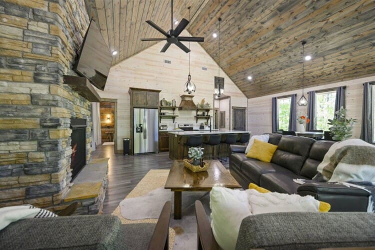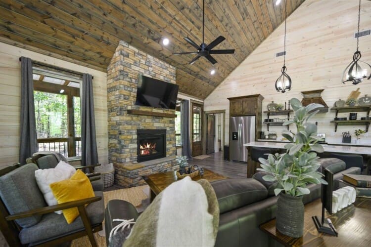 Shady Pines Cabin is the perfect couples’ retreat, nestled north of the lively Broken Bow, Oklahoma. From the moment you arrive, you’ll be welcomed by the rustic decor and wood accents that create a warm and inviting atmosphere, making Shady Pines feel like your home away from home.