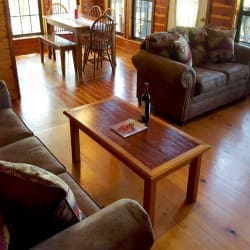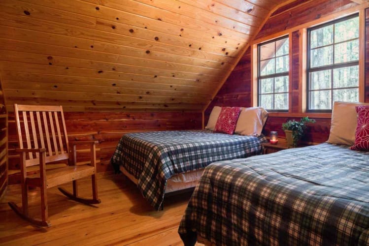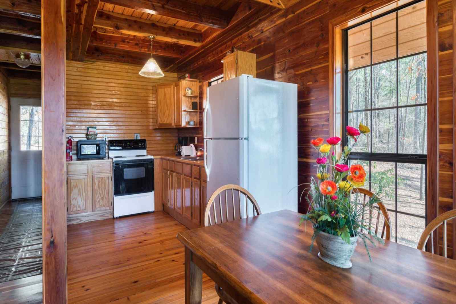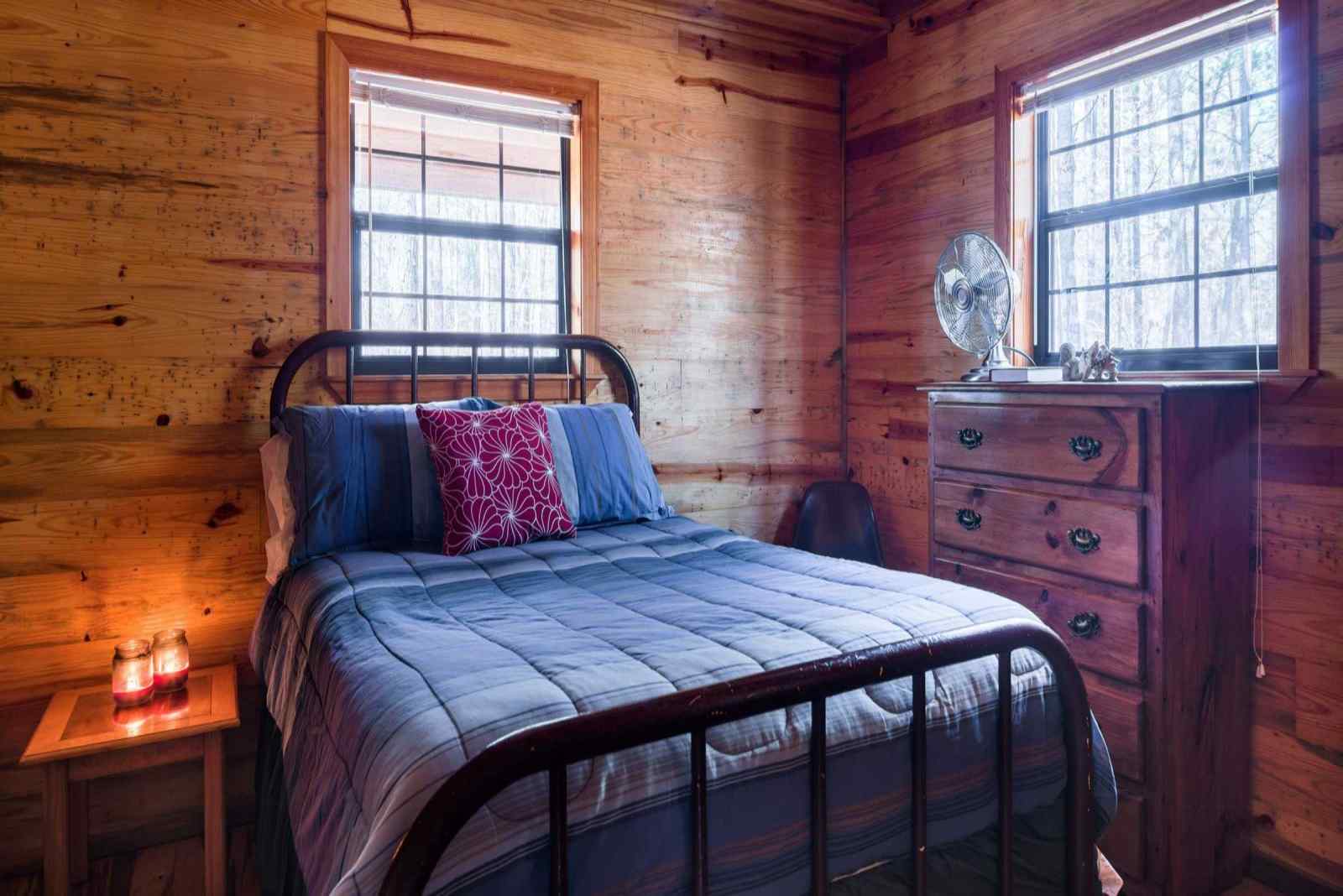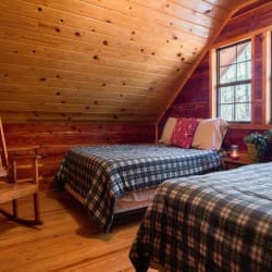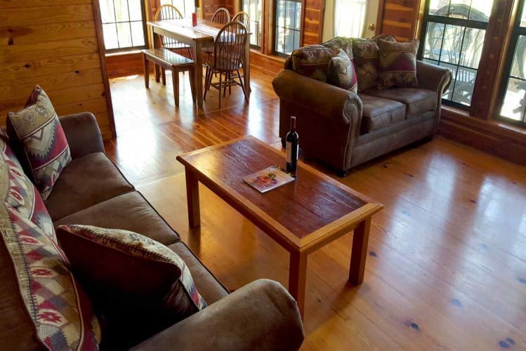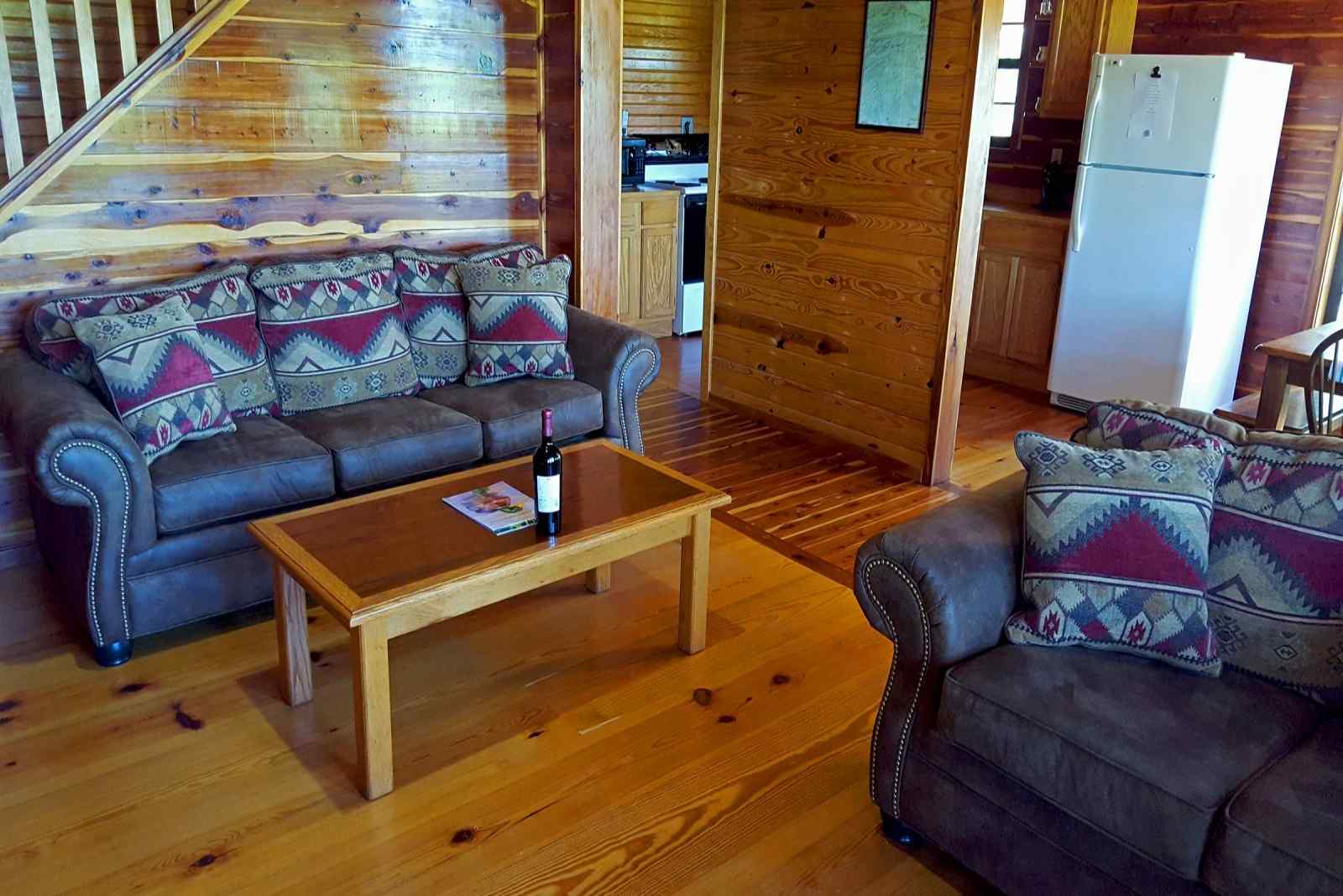 This spacious yet cozy retreat accommodates up to 6 guests, featuring one queen bed and two full beds in the loft. After exploring the trails, unwind in front of the flat-screen TV or gather around the BBQ grills for a delicious meal cooked with complimentary firewood. Later, enjoy intimate evenings by the outdoor campfire.